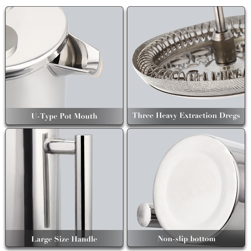 Fabricante De Café Imprensa Francesa Aço Inoxidável Máquina De Café Espresso Alta Qualidade Dupla-Parede Isolada Cafeteira 1000Ml