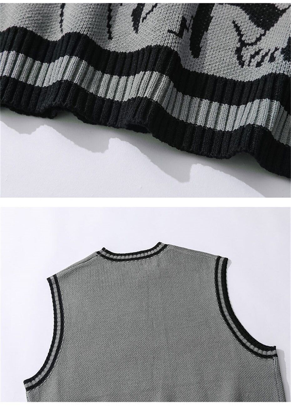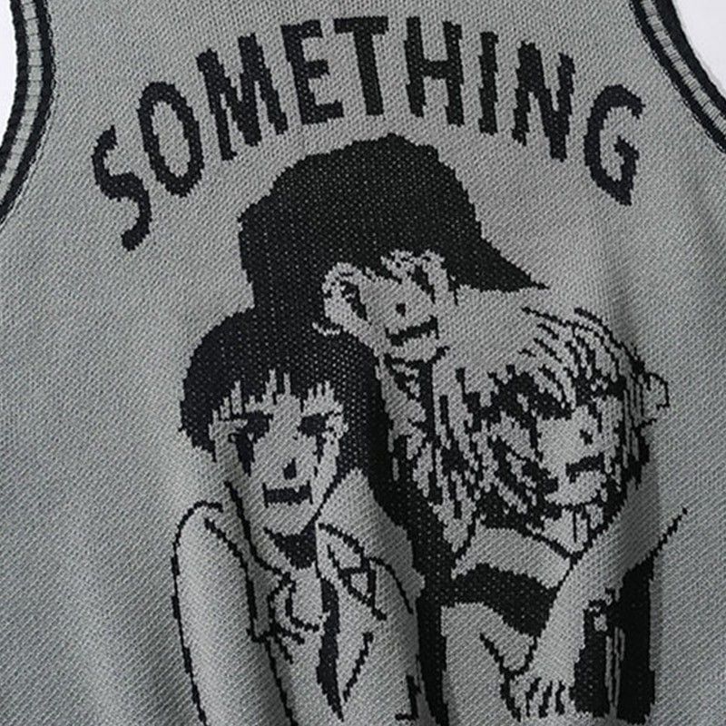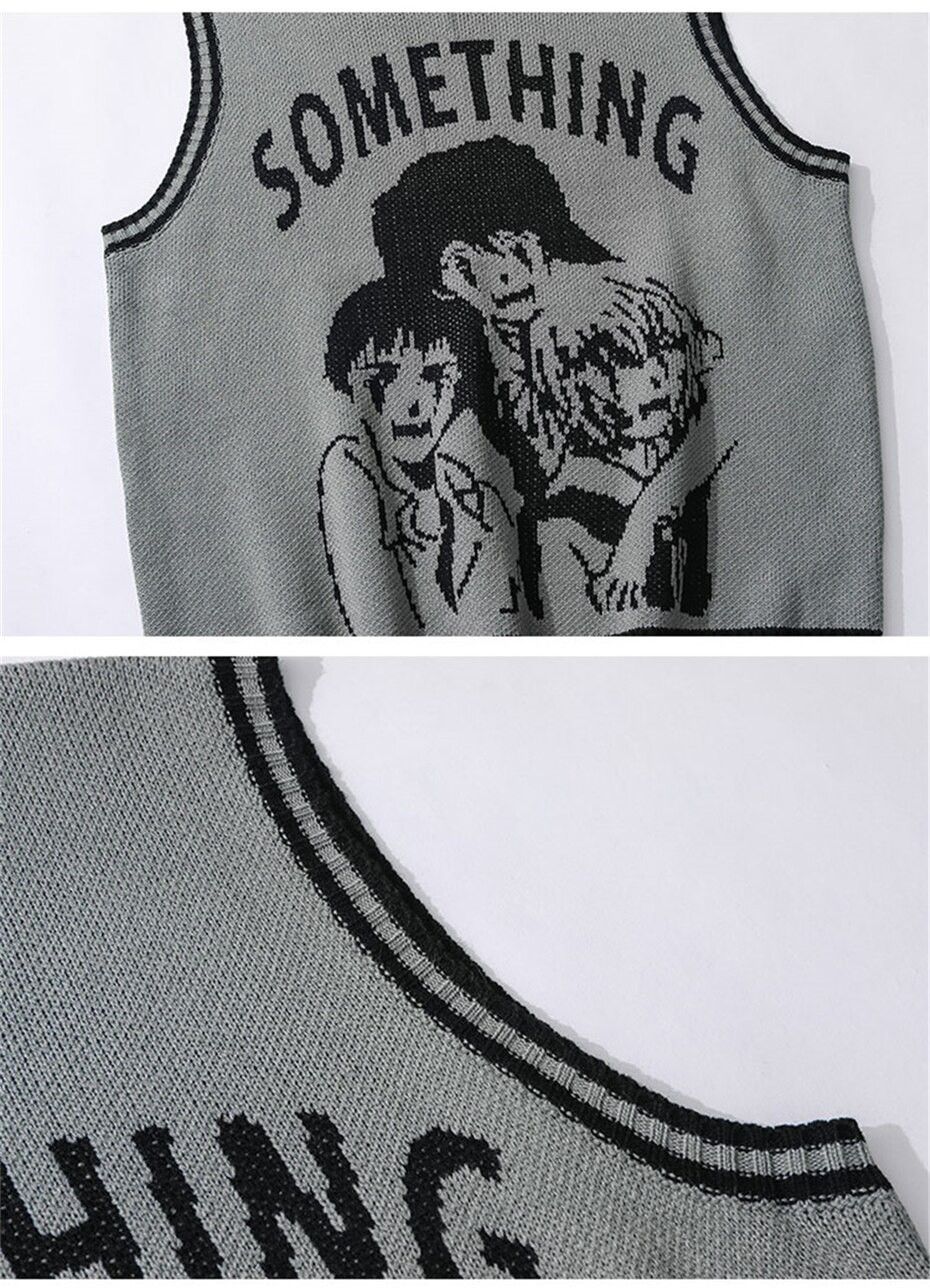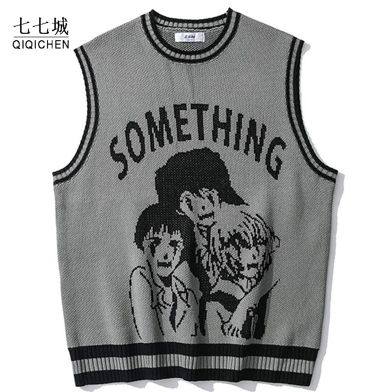 Colete de malha blusas streetwear hip hop casual desenhos animados com estampa de anime decote em o malhas suéter casaco masculino tops