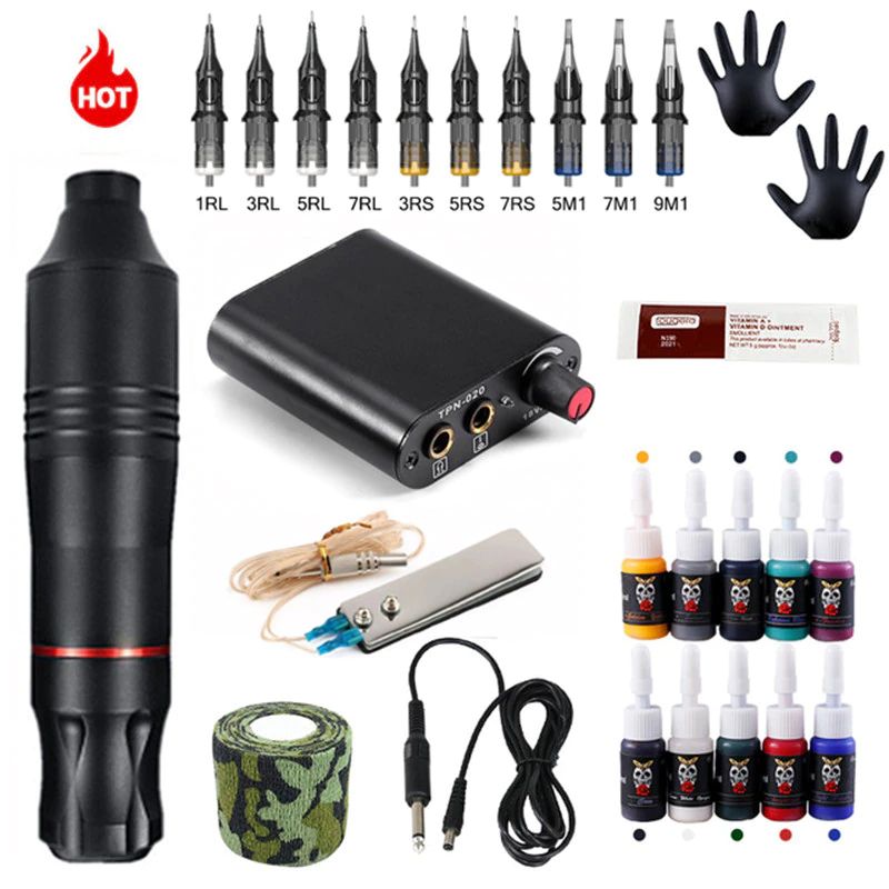 Caneta De Tatuagem Rotativa Com Fornecimento De Energia, Cartuchos Agulhas, Acessórios Para Máquina De Tatuagem Permanente