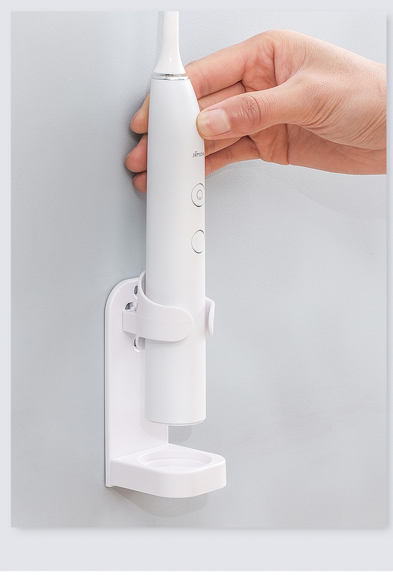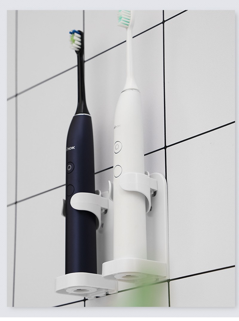 O suporte projetado para escovas de dentes elétricas é conveniente para armazenar, anexado à parede, sem manchas de água à esquerda, fácil de limpar