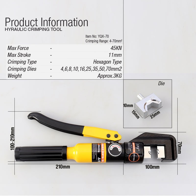Alicate Hidráulico Para Compressão, Ferramenta De Friso Hidráulico Para Compressão, Faixa 4-70Mm, Pressão 6T
