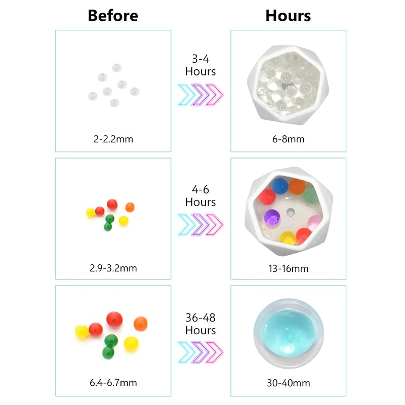 Grânulos de água pacote arco-íris mix crescente bolas geléia água gel grânulos para spa recarga, crianças brinquedos sensoriais, vasos, planta, casamento e decoração de casa.
