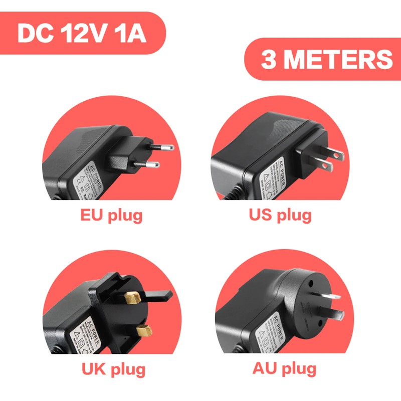 Adaptador De Segurança Para Câmera De Cctv, Adaptador Profissional Energia Com 3 Metros Comprimento 12V E 1A Para Câmera De Segurança Com Tomada Padrão Ue/Eua/Reino Unido/Au Rxz12V1A