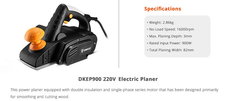 Deko-Plaina Elétrica Dkep900, 220V, 900W Ferramenta Elétrica Portátil, Com Acessórios