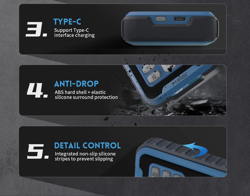 9. é alimentado por uma bateria de lítio de grande capacidade e é carregado com uma interface tipo-c (5v). a capacidade da bateria de lítio é 3000mha, horas de trabalho super longas