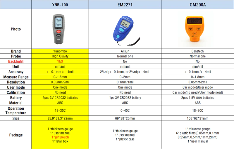 1pc YNB-100 medidor de espessura de revestimento