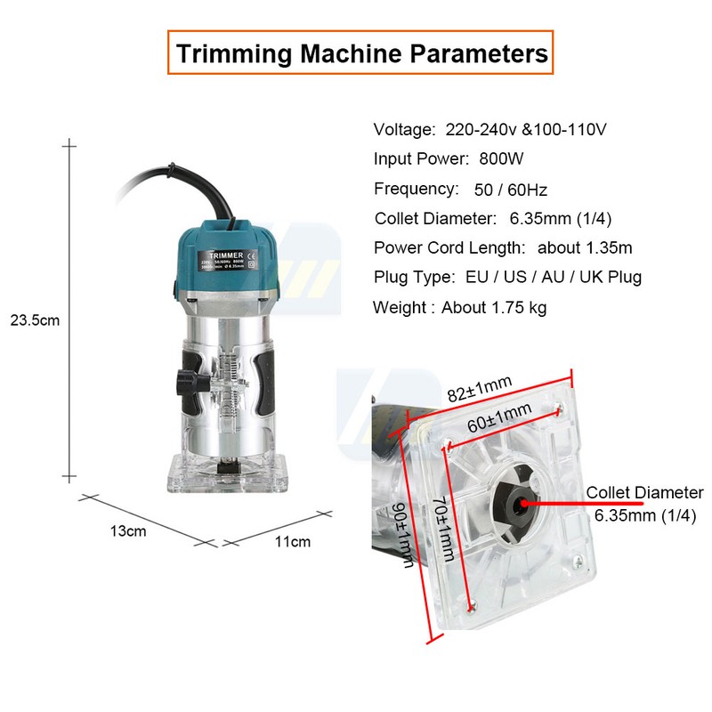 Roteador de madeira elétrico azul de 800w 6.35mm