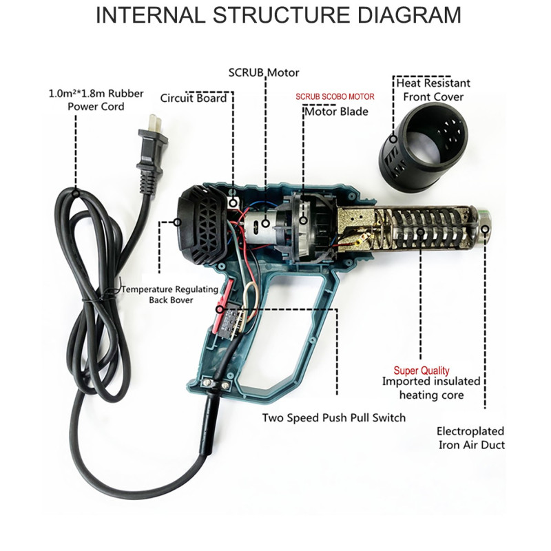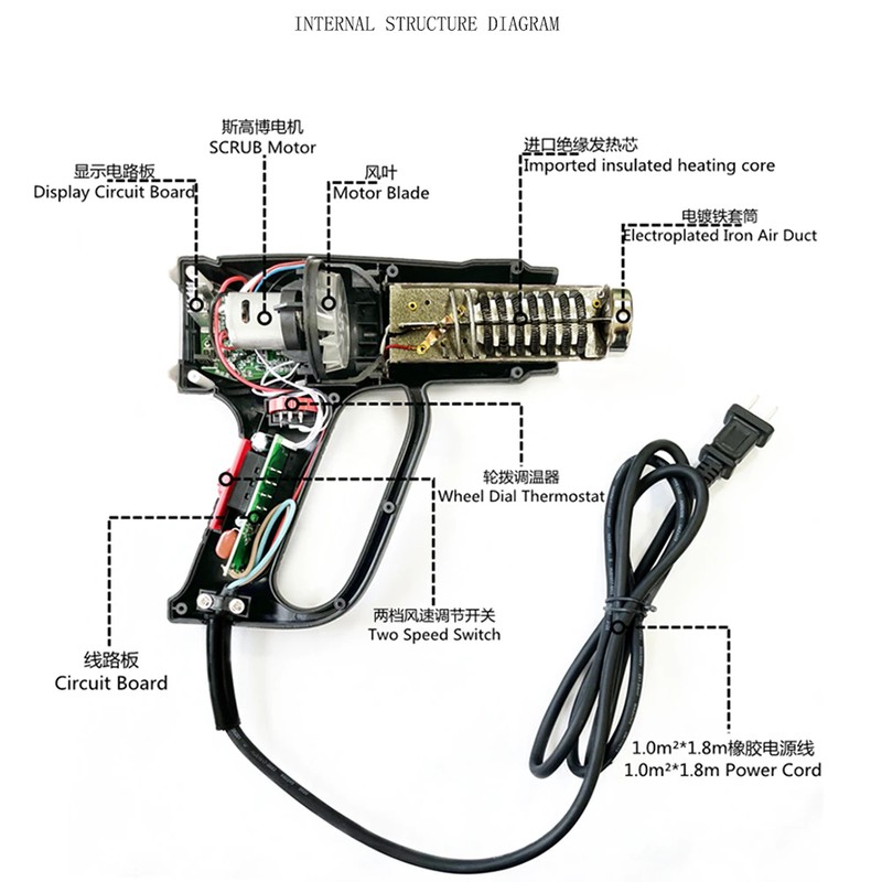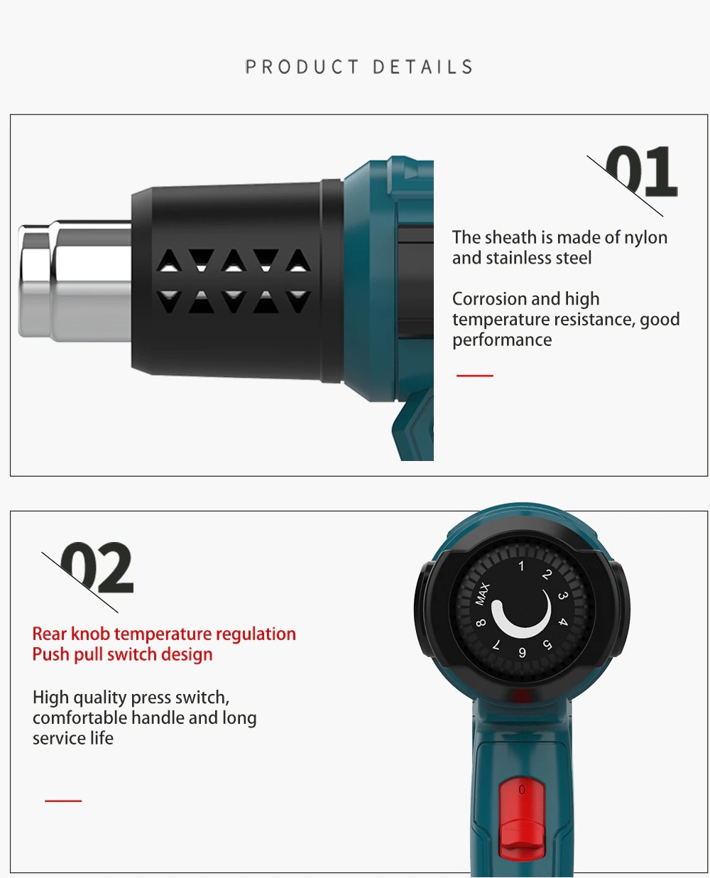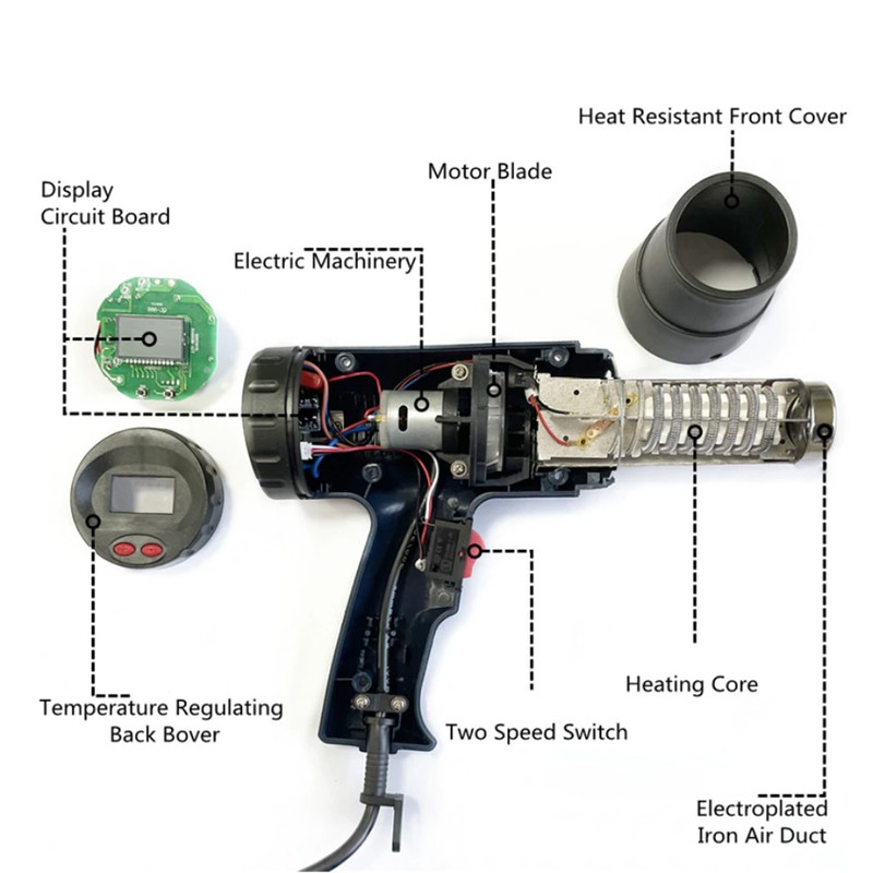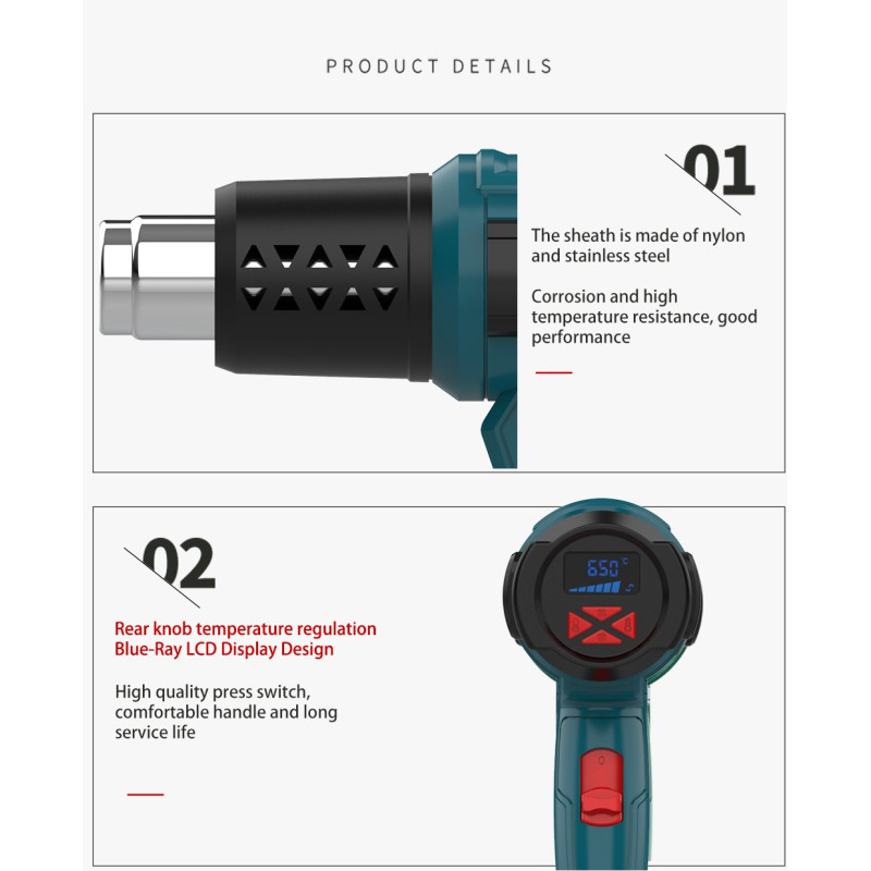Industrial Secador De Cabelo Pistola Calor 2000W Pistola Ar Quente Secador De Ar Para Solda Ventilador Térmico Estação Solda Encolher Ferramentas De Envolvimento