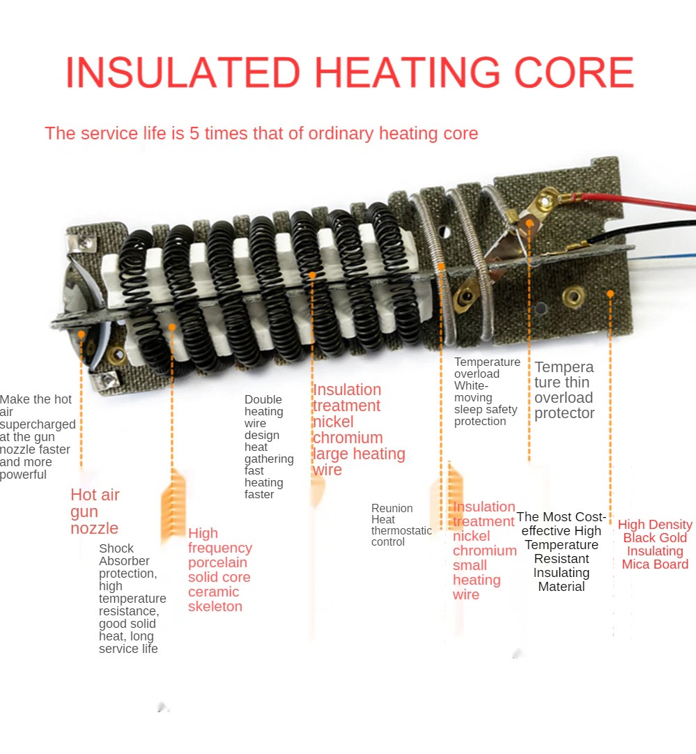 Núcleo de aquecimento: placa de mica de ouro + núcleo de aquecimento isolado + interruptor de salto + estrutura cerâmica