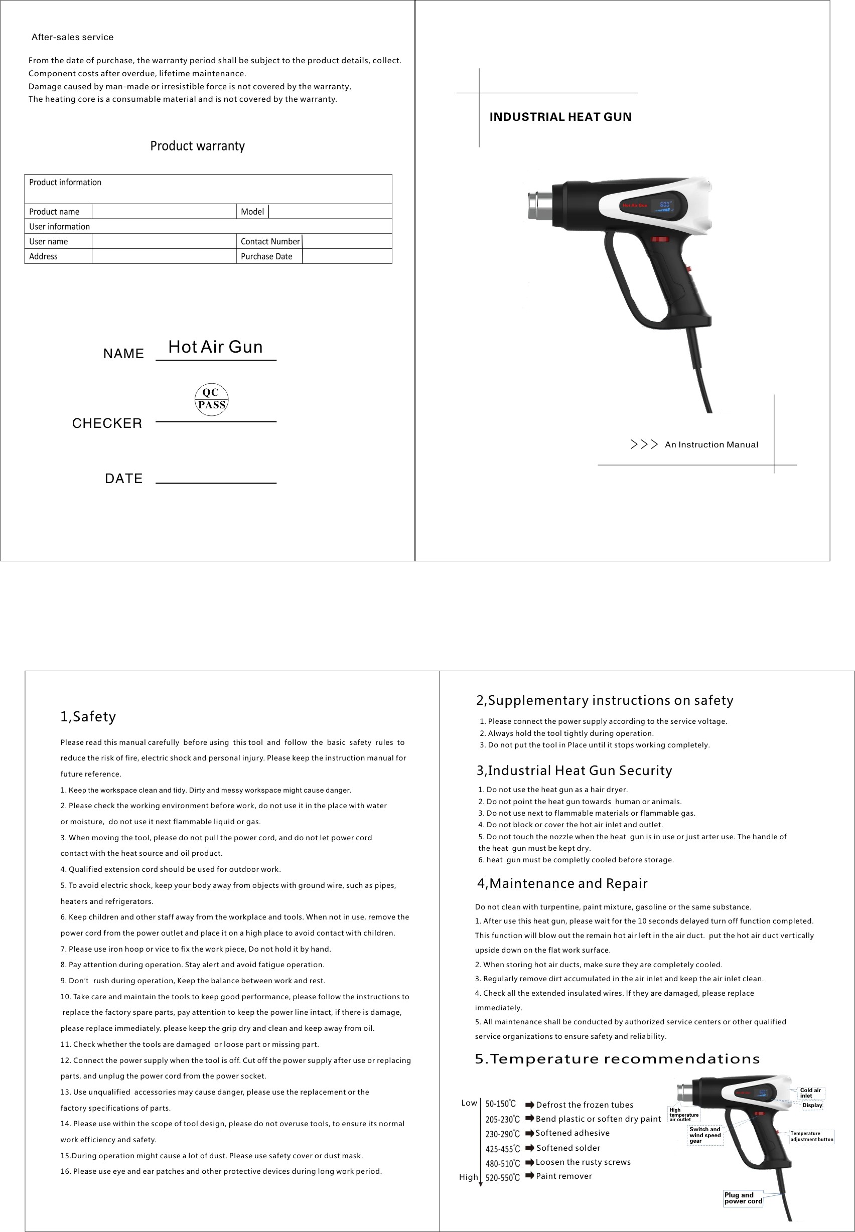 Número do modelo: pistola de calor do secador de cabelo industrial 2000W secador de ar de ar quente de ar
