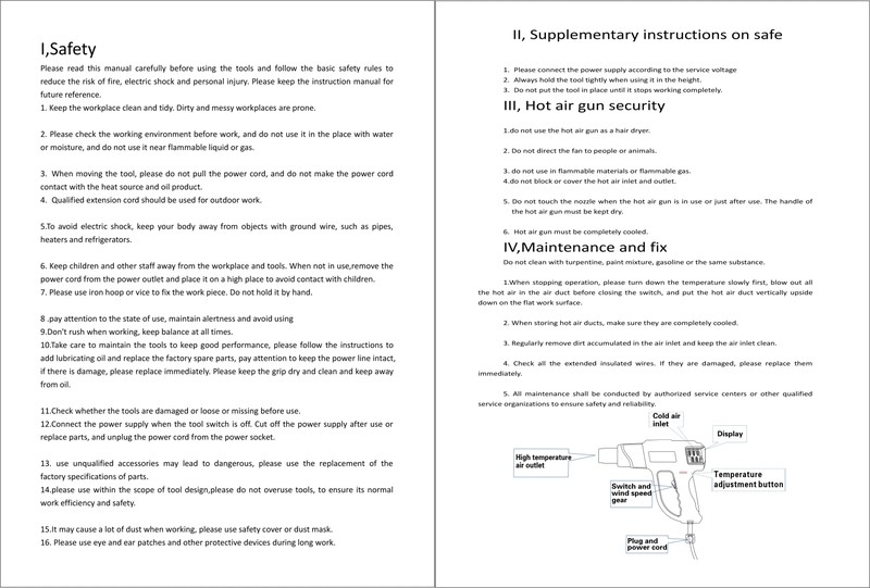 ⑤ Não bloqueie nem cubra a entrada de ar e a saída da pistola de ar quente.
