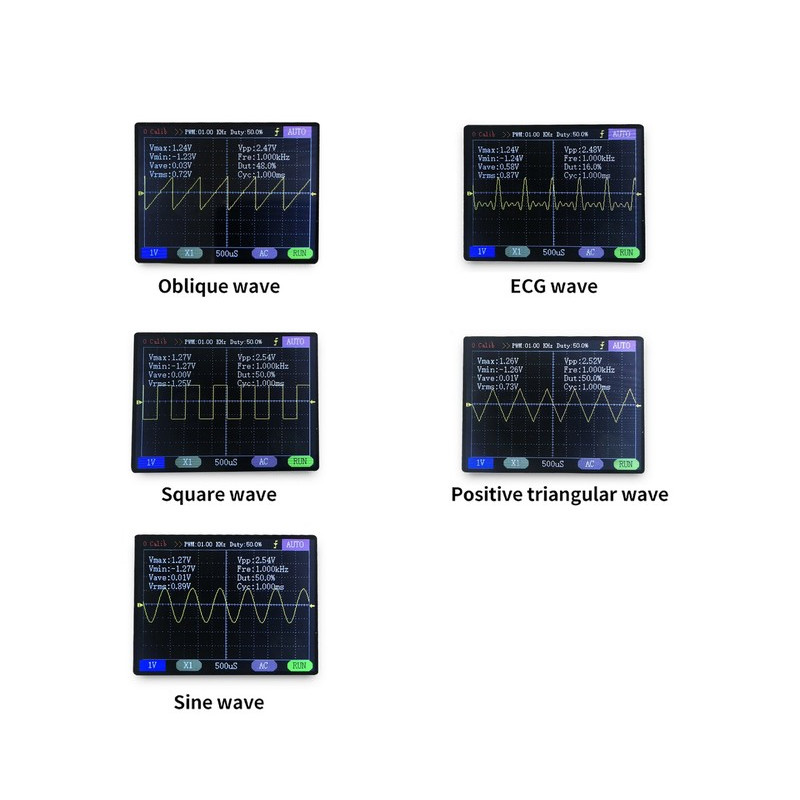 Com exibição digital de parâmetro de forma de onda, incluindo freqüência, período, relação de dever, max./min./avg./pico/valores virtuais.