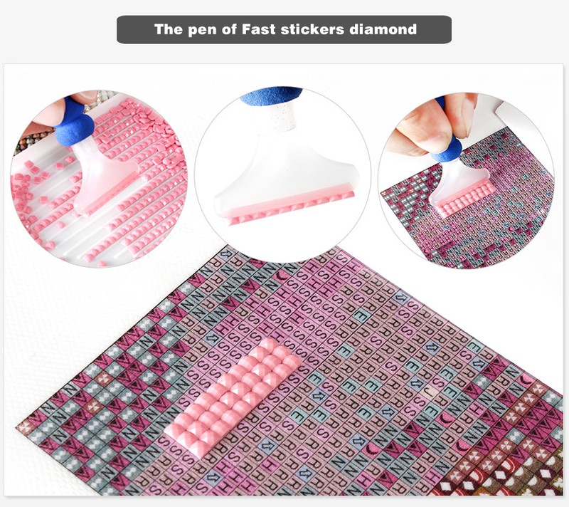 2. encha a caneta com cola, coloque os diamantes na placa.