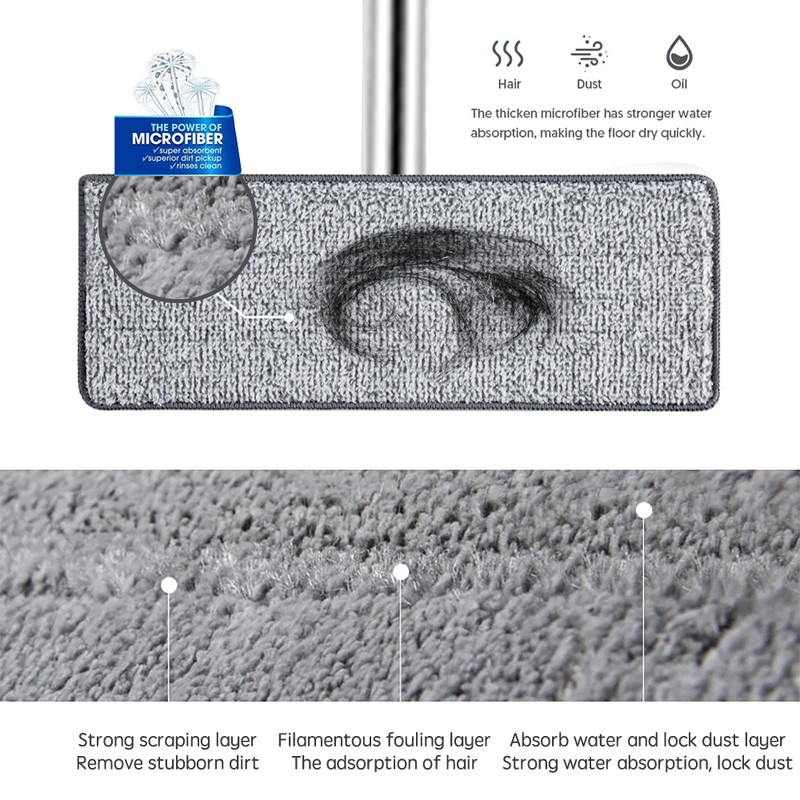 Pads qualidade 6 almofadas reutilizáveis & punho estendido 】: este sistema de limpeza do assoalho inclui 6 recargas reutilizáveis & laváveis do esfregão de microfibra, que absorvem rapidamente a água, removem a poeira, cabelo e mancha de óleo facilmente. Com alça de aço inoxidável ajustável.
