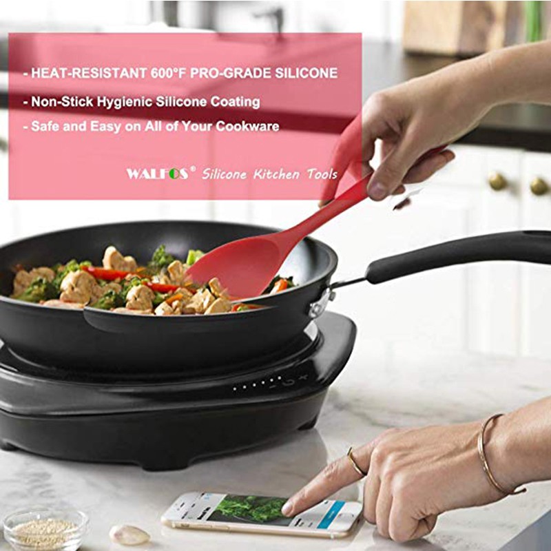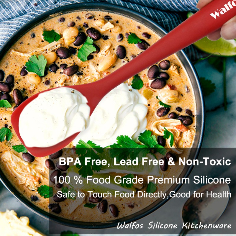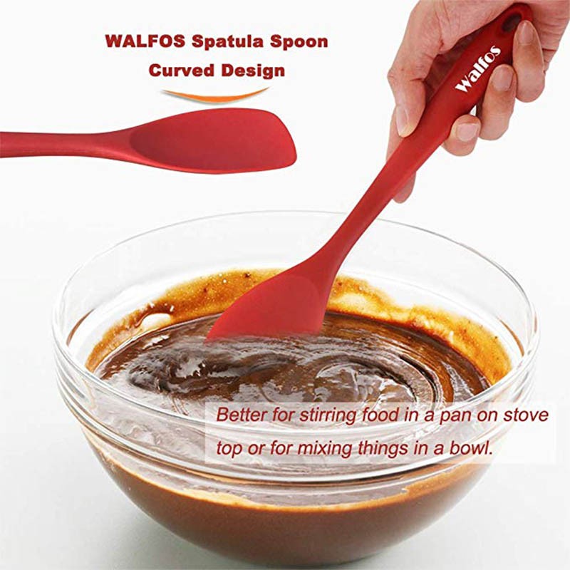 Walfos grau alimentício silicone cozinhar colher essencial resistente ao calor flexível antiaderente silicone cozimento colher de mistura espátula
