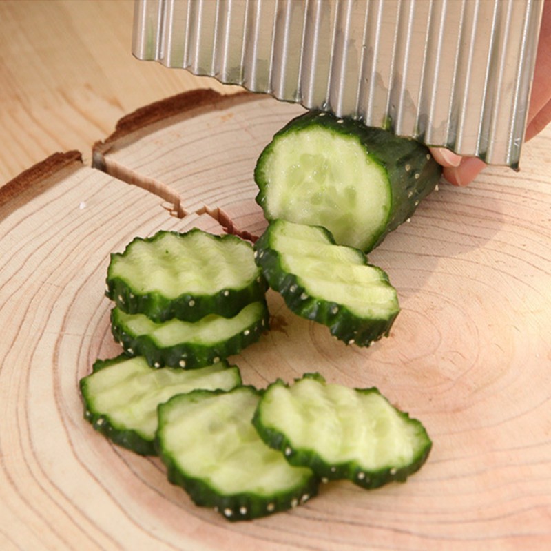 Torne suas refeições divertidas cortando alimentos com esta faca ondulada de corte enrugado.