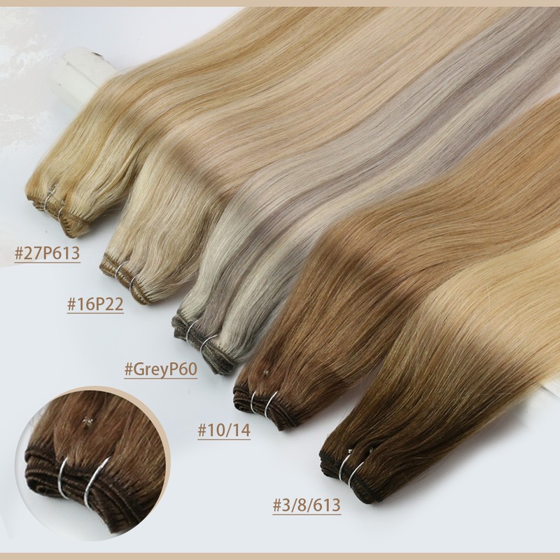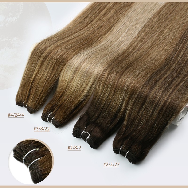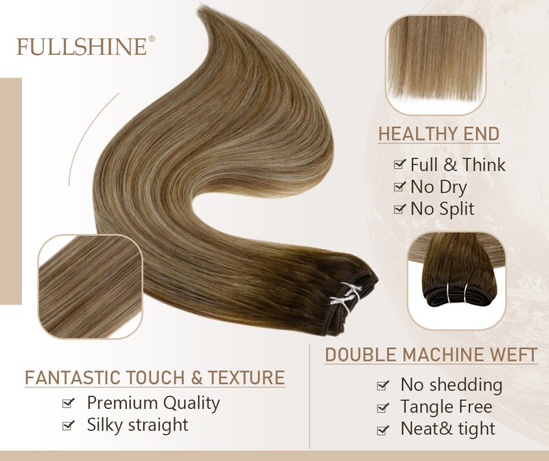 Brilho Completo Extensões De Trama Do Cabelo Humano Feixes De Cabelo Ombre Cor Loira 100G Costurar Em Seda Reta Remy Pele Trama Dupla Para Salão De Beleza