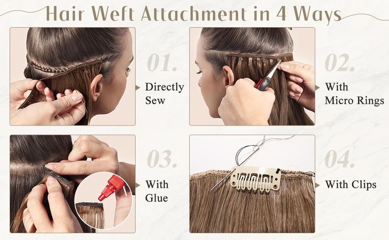 Attach prenda as extremidades da trama usando uma agulha e linha para evitar que o cabelo caia da trama.