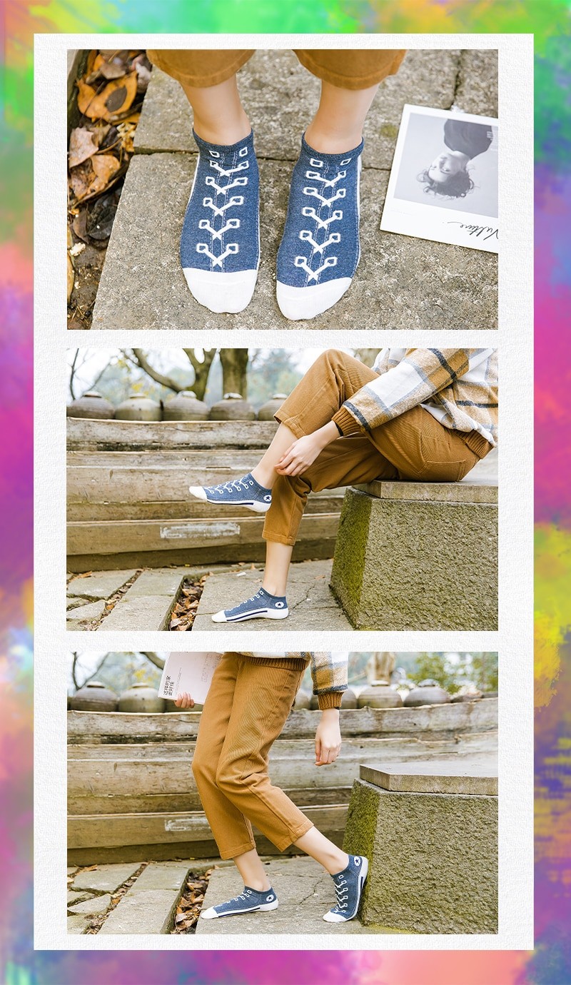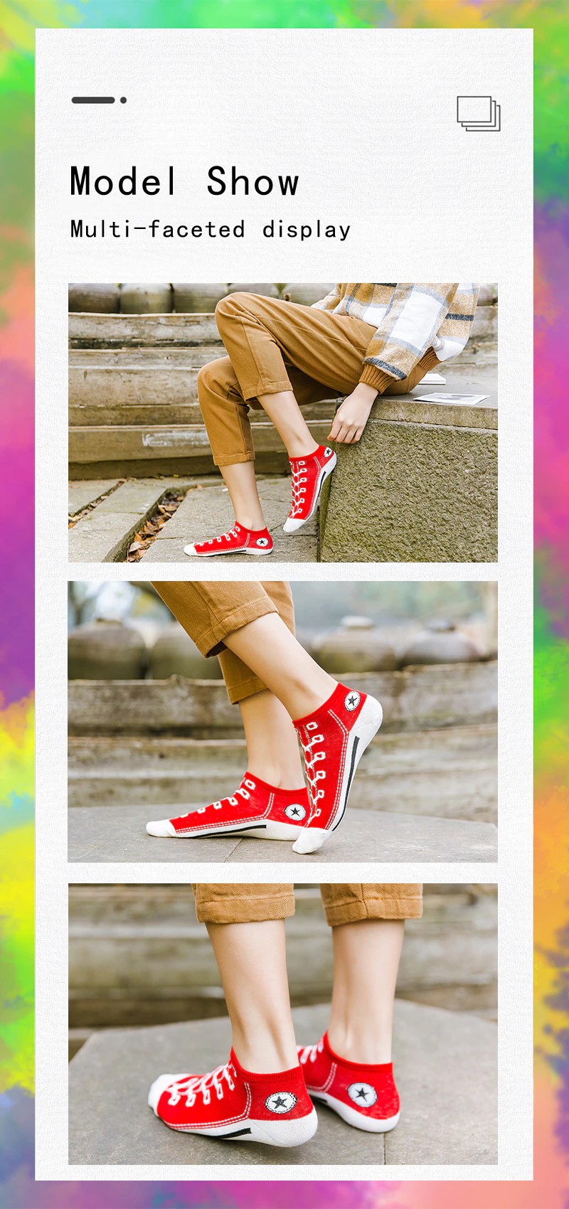 Engraçado Kawaii Sapato Imprimir Curto Meias De Algodão Moda Harajuku Hip Hop Bonito Japonês Moda Dropshipping Macio Feminino Chinelos Meias