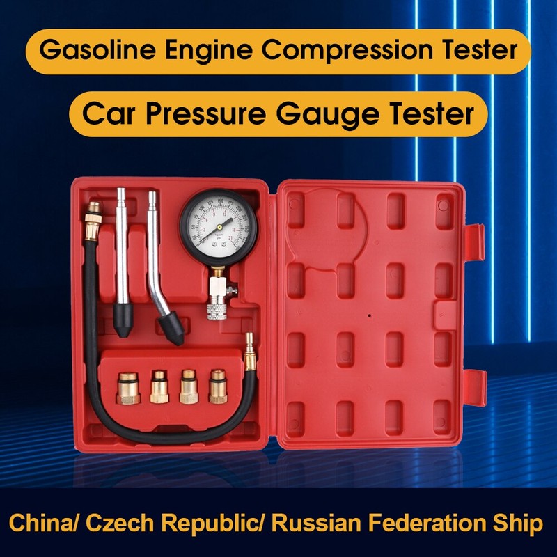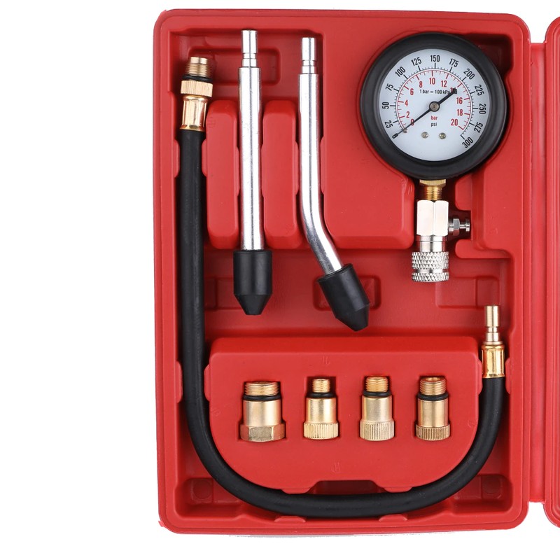 Este verificador automotivo da compressão trabalha com a maioria dos modelos do carro com motores da gasolina. Vem com adaptadores e tubulações em tamanho diferente para caber modelos diferentes. Amplamente utilizado para verificar a compressão no cilindro do motor de forma rápida e precisa.