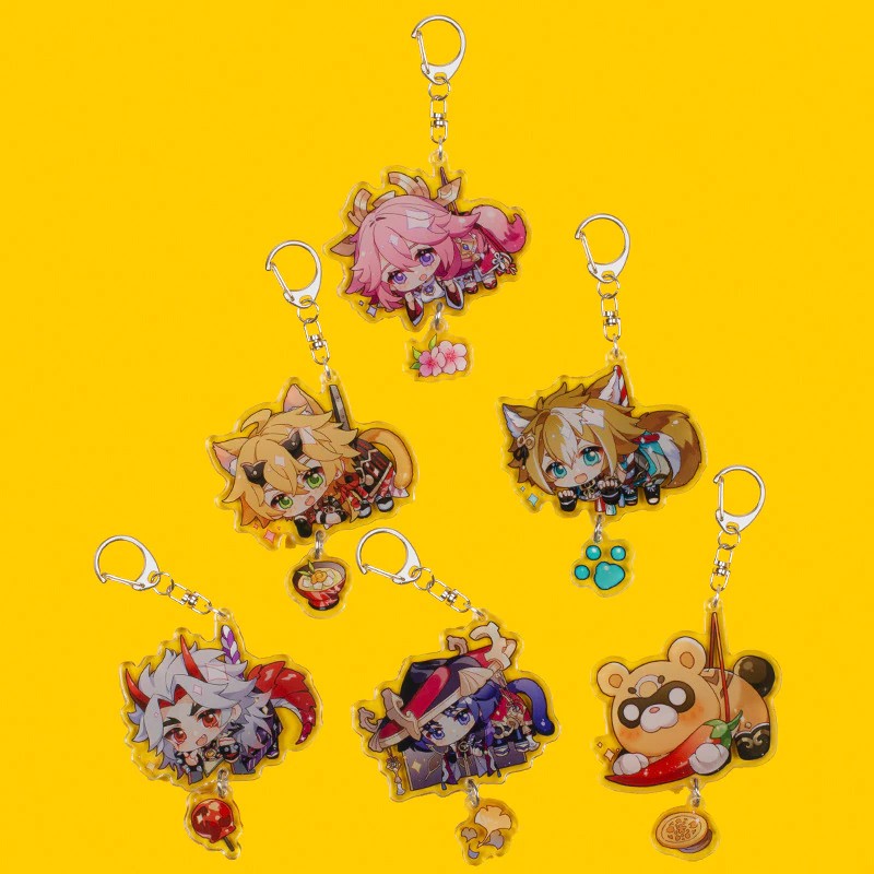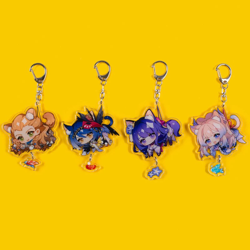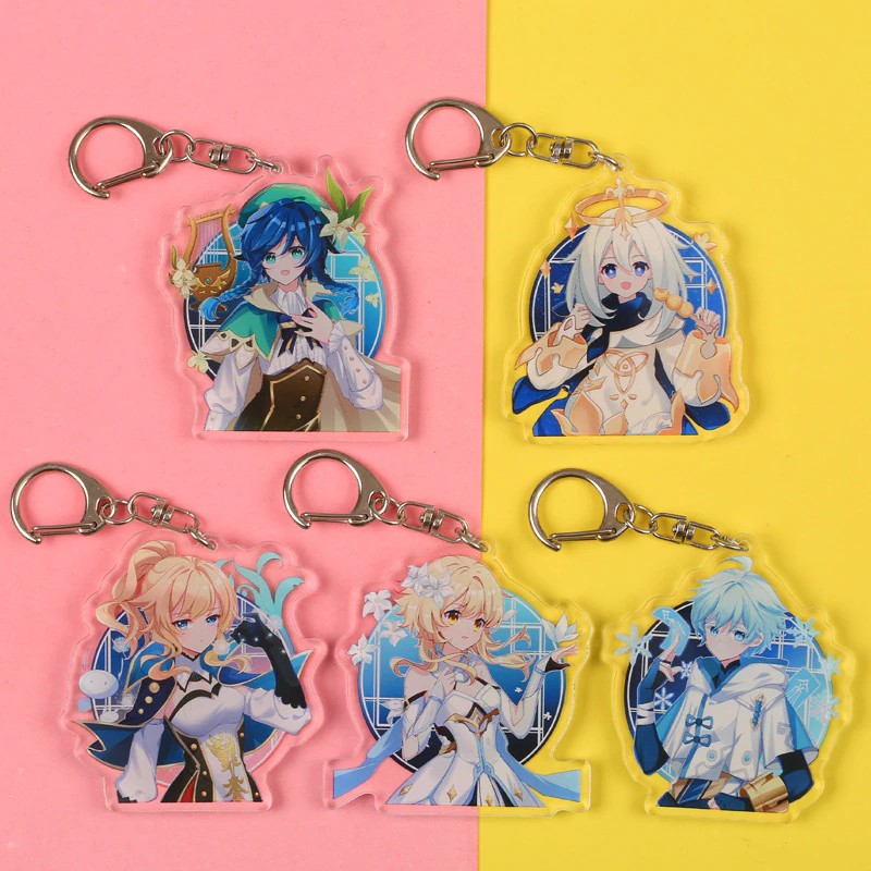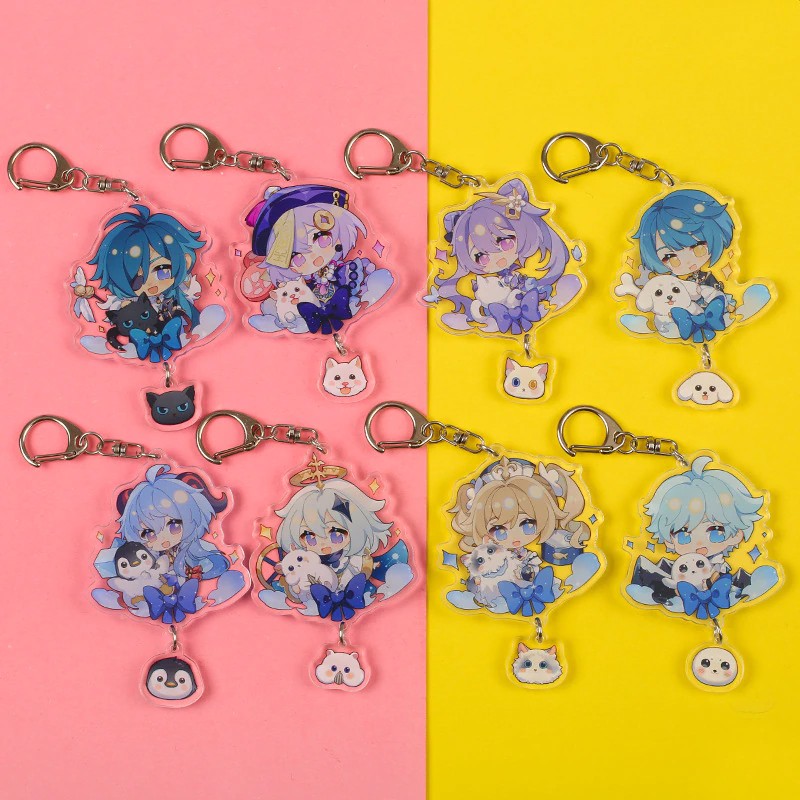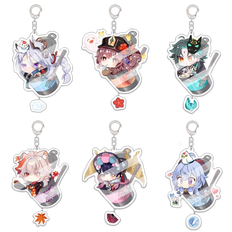 Genshin Impacto Kaedehara Kazuha Barbara Gunnhildr Acrílico Chaveiro Dos Desenhos Animados Cosplay Chaveiro Pingente Adereços Acessórios