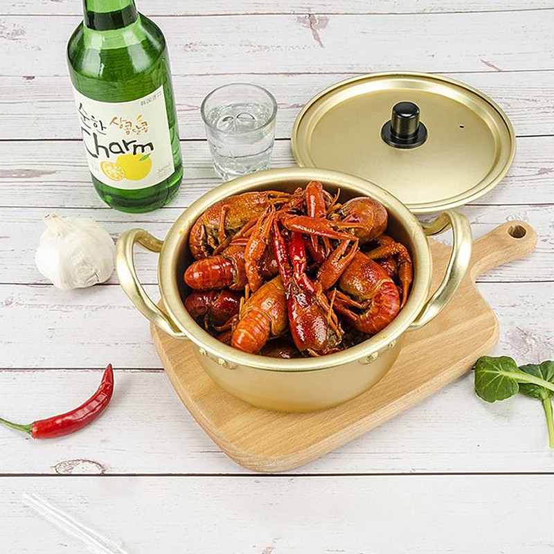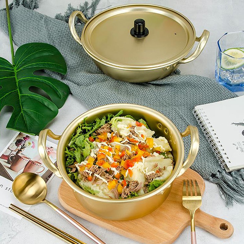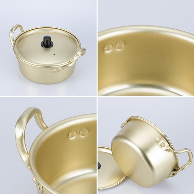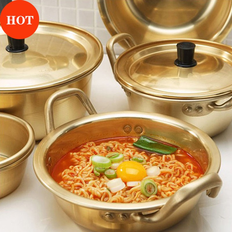 Pote de macarrão de ouro coreano ramen macarrão pote sopa de alumínio com tampa macarrão leite ovo sopa cozinha ferramentas panela rápido