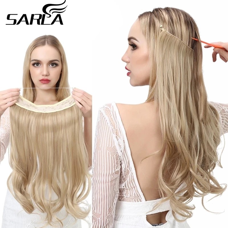 Extensões De Cabelo Sintético Do Halo Nenhum Grampo Em Ombre Loira Preto Rosa Natural Falso Cabelo Artificial Peça Para Mulher 14 &Quot;16&Quot; 18 &Quot;22&Quot;