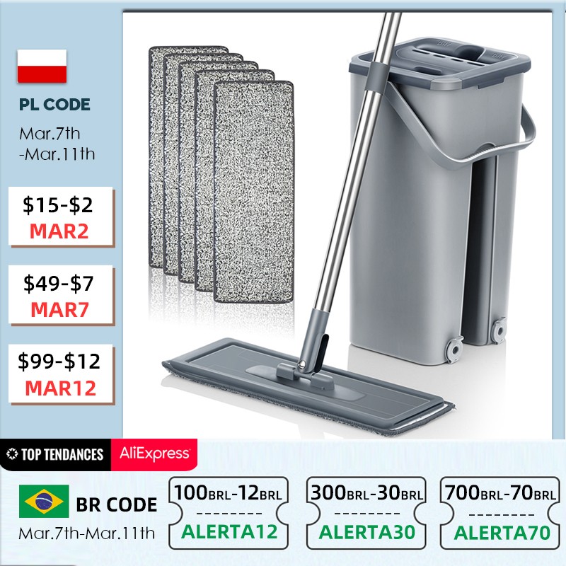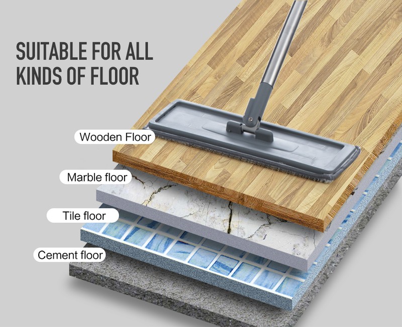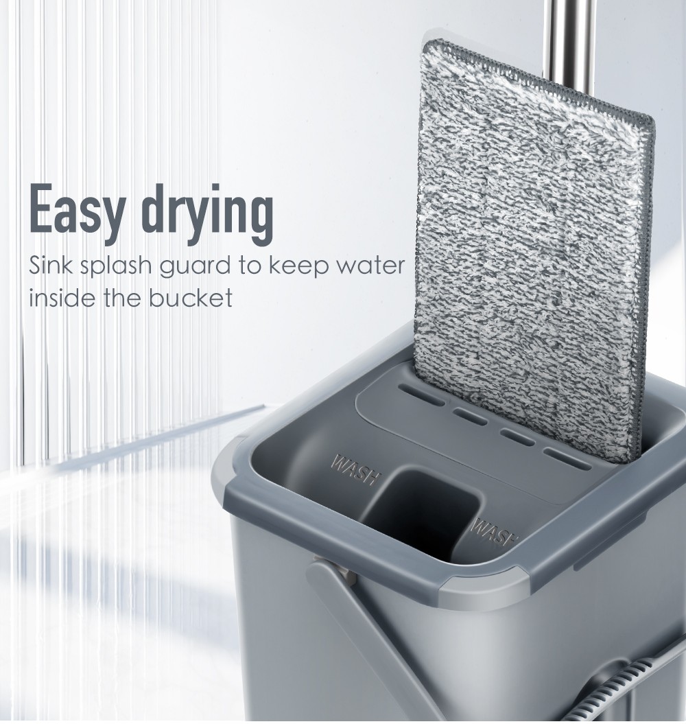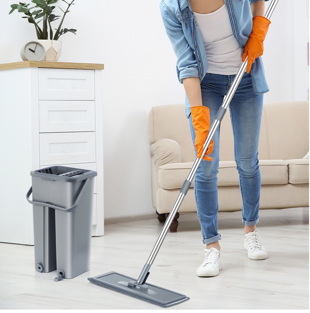 Mão Livre Chão Plano Mop E Balde Conjunto Para O Sistema De Limpeza De Piso Doméstico Profissional Com Almofadas De Microfibra Lavável Para Madeira