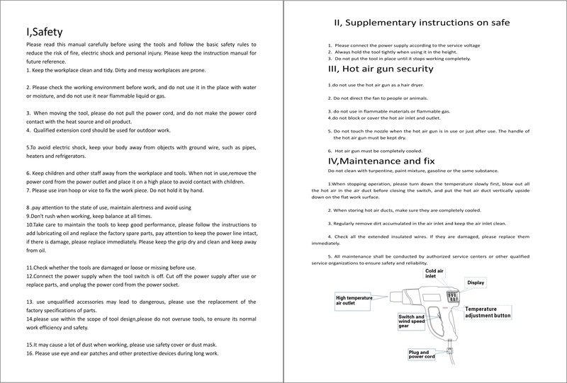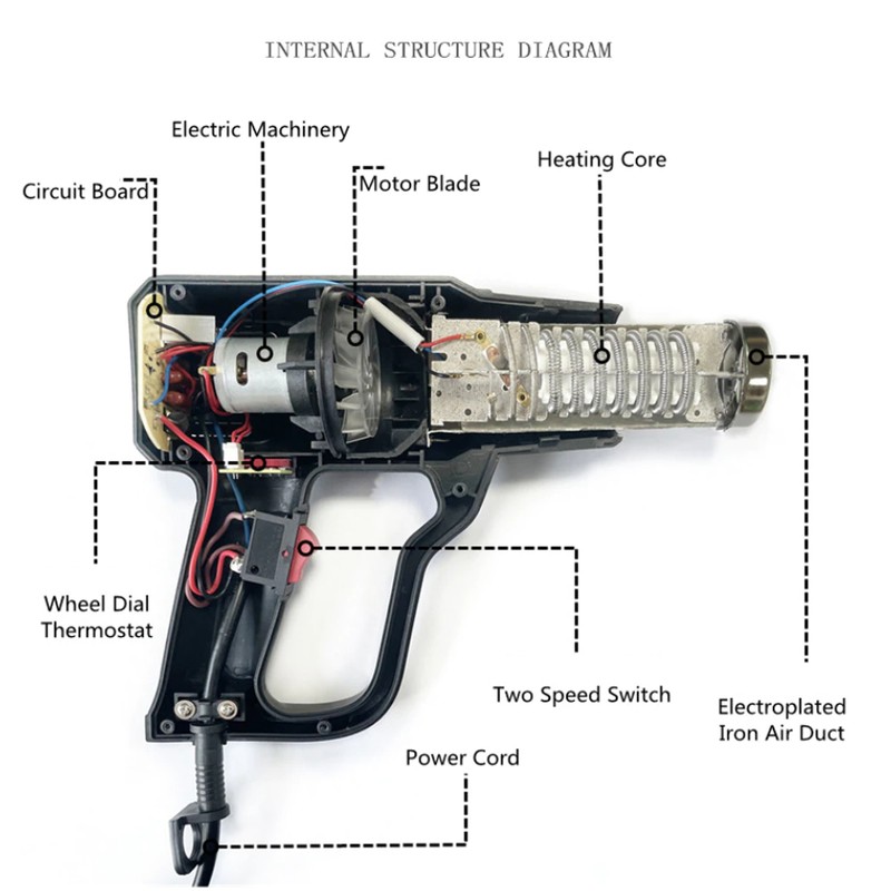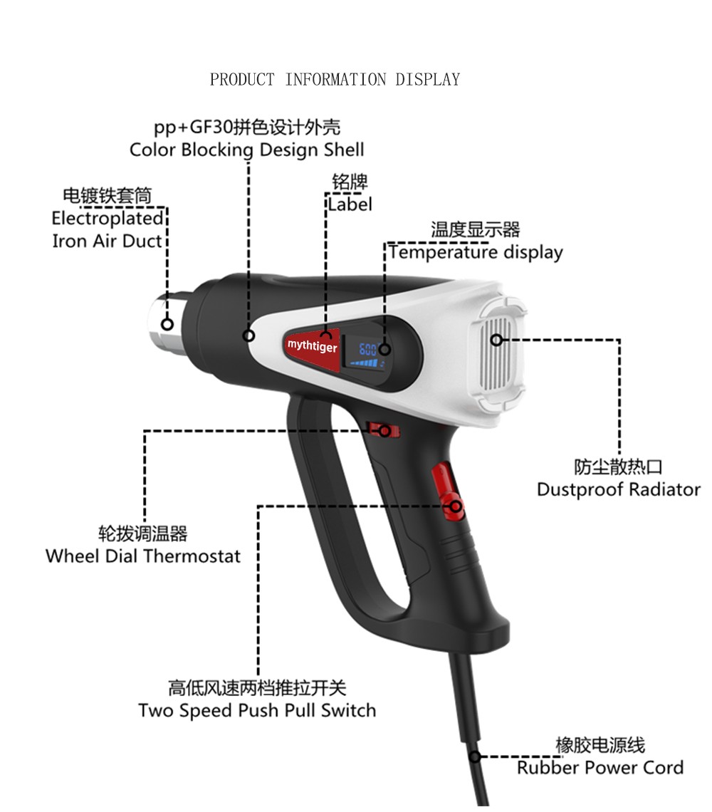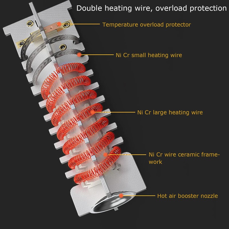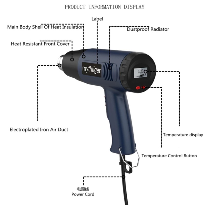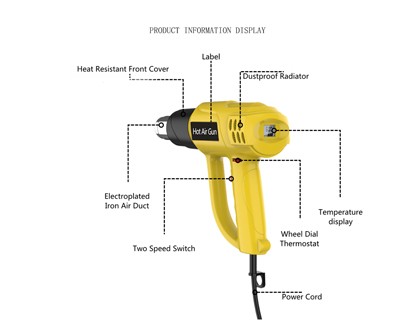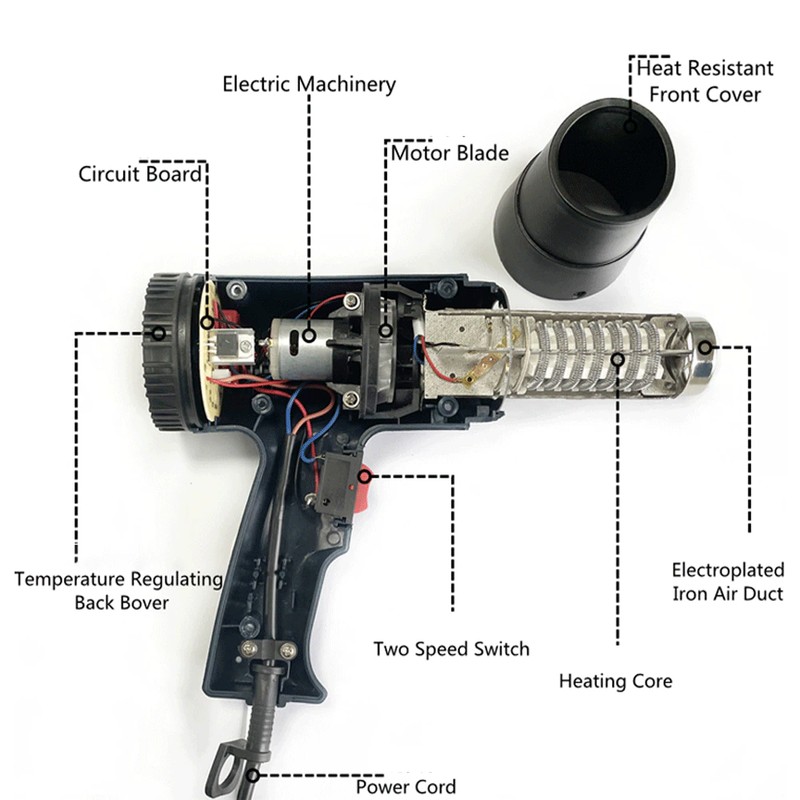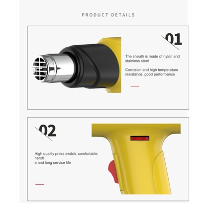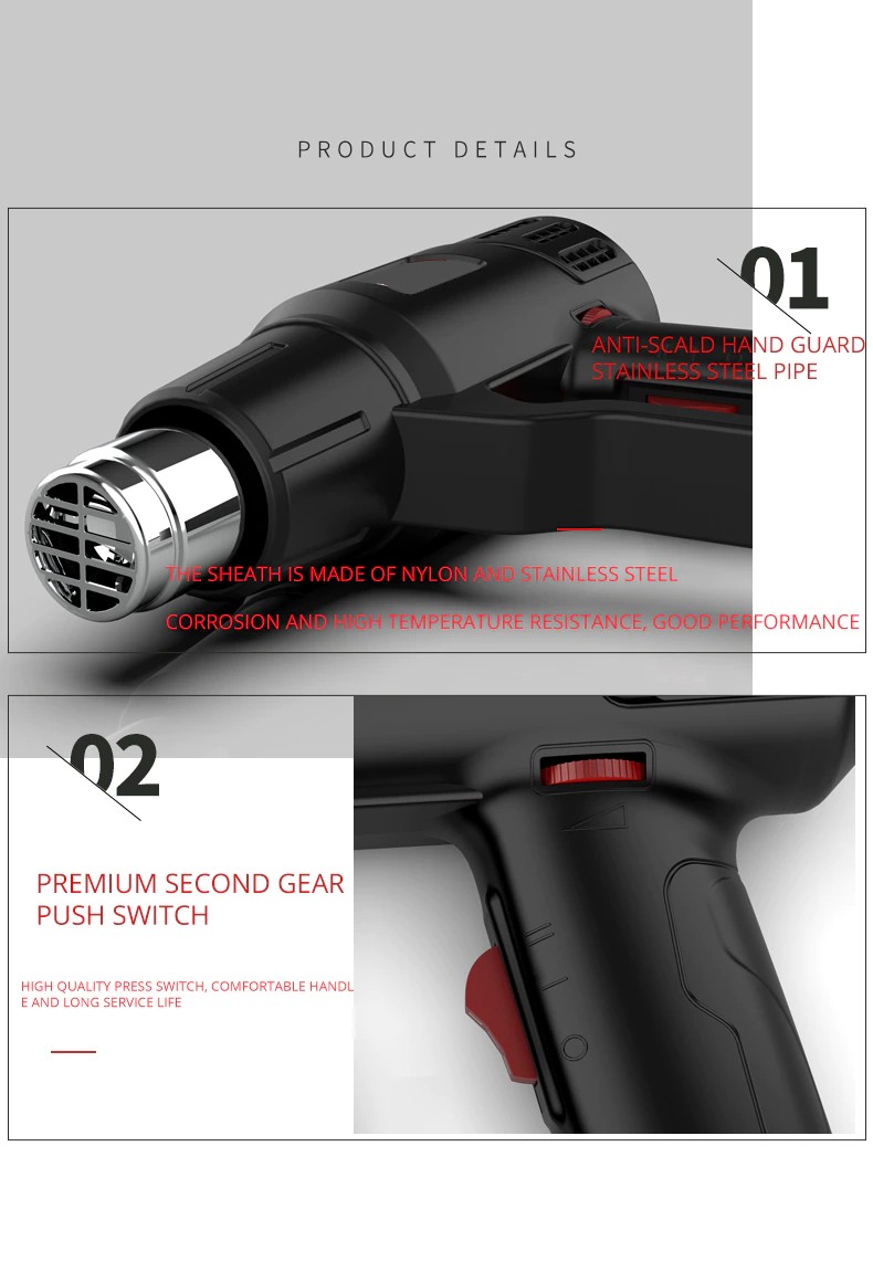 Alta qualidade e seguro: tem boa resistência à temperatura. nosso produto também tem a função de proteção de alta temperatura, a pistola de calor vai parar de trabalhar quando a temperatura é muito alta, e o cabo de alimentação passou a certificação de segurança ul, que pode mantê-lo seguro ao usar.