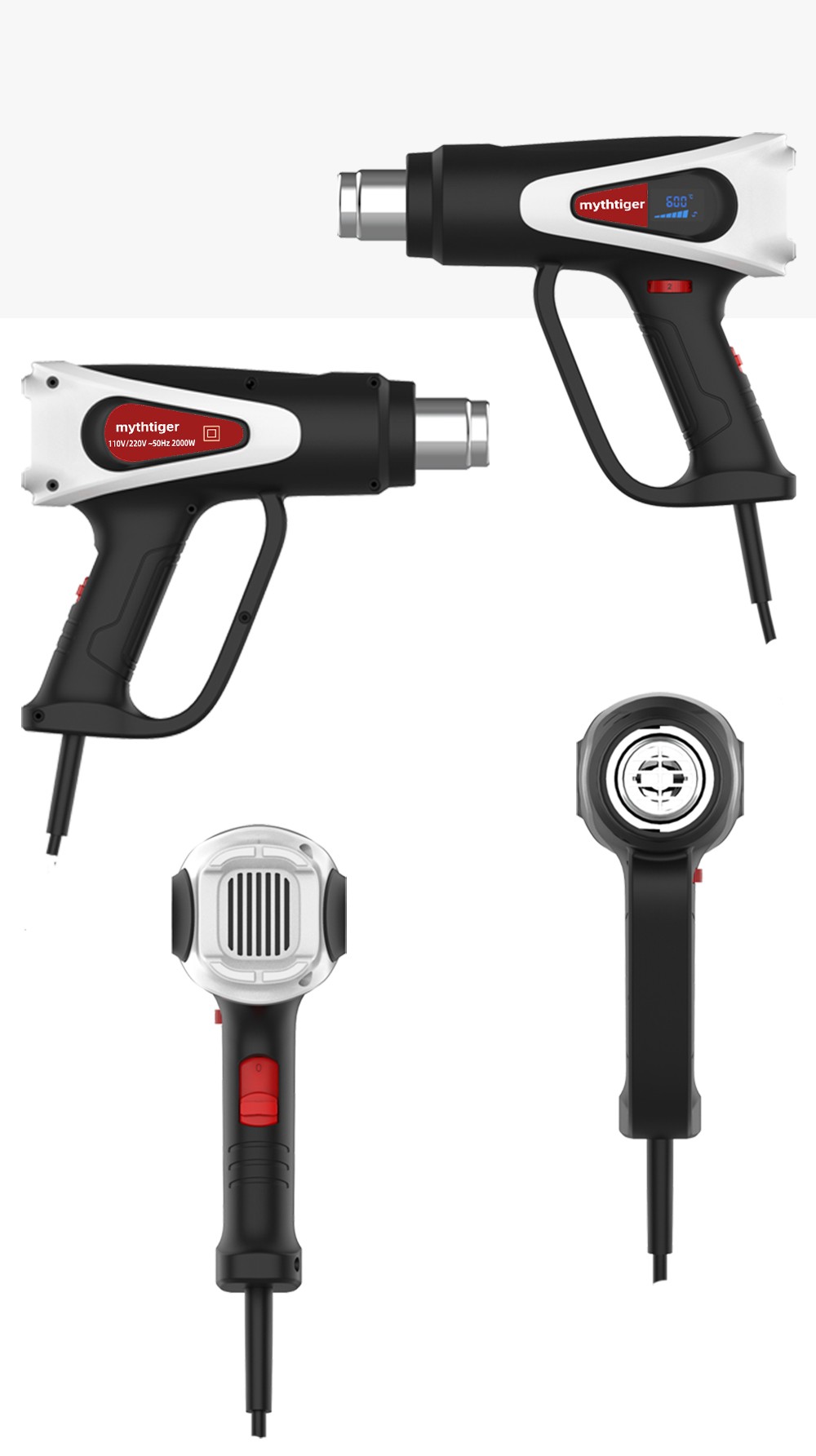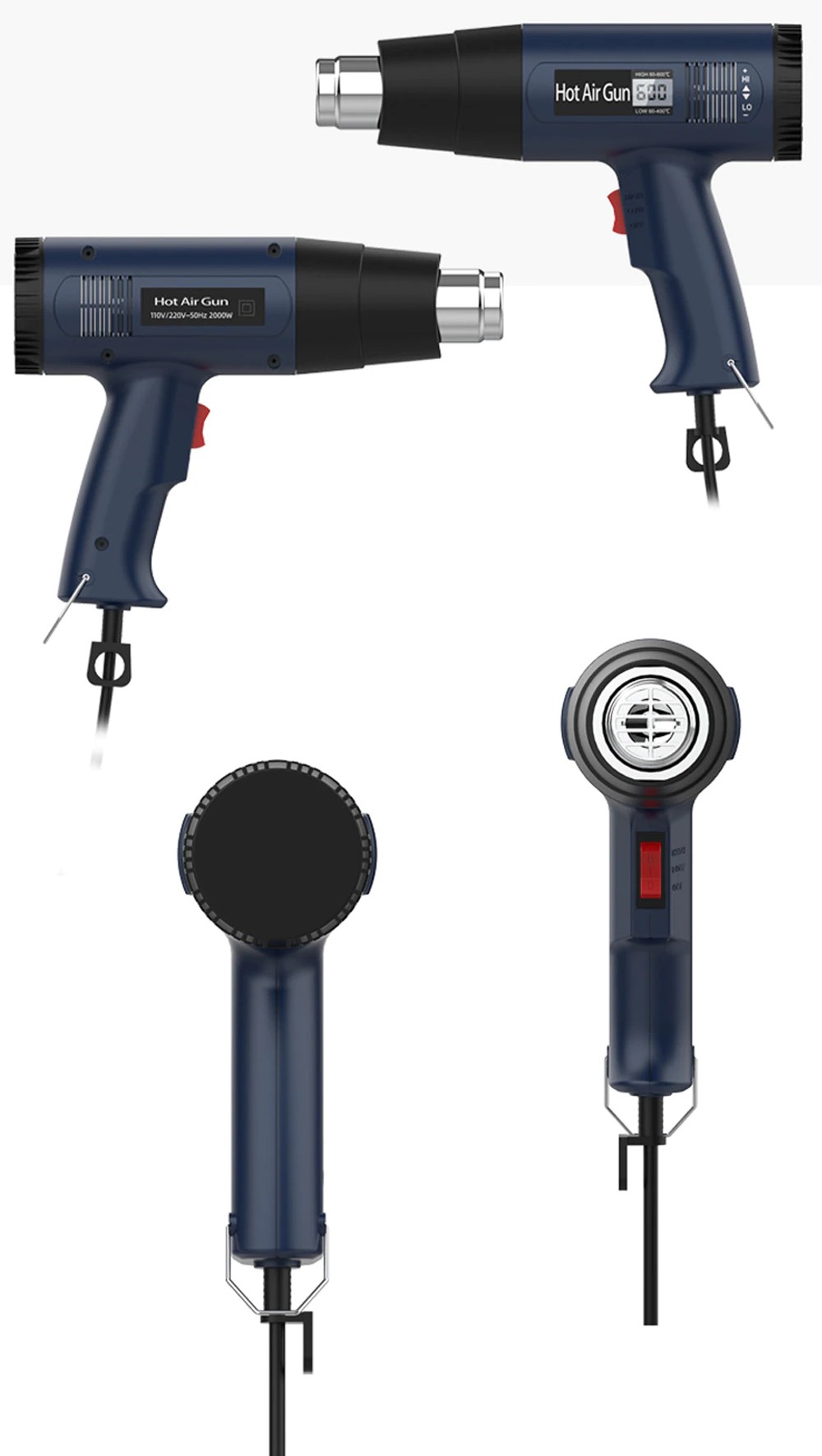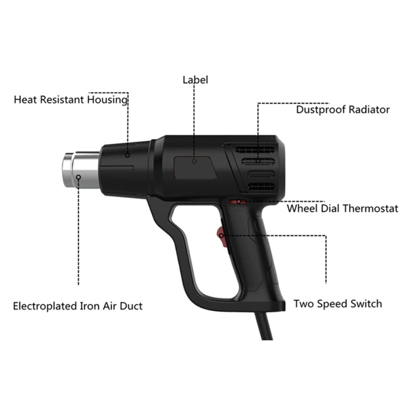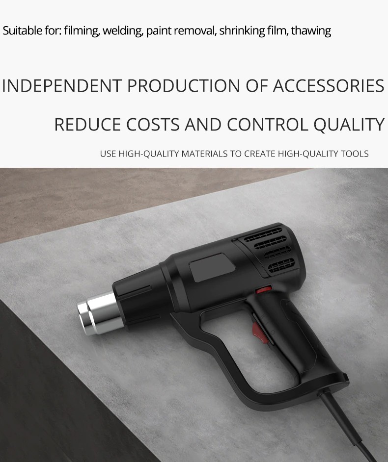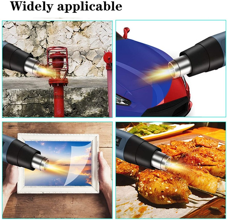 Vários bocais & acessórios: equipado com quatro bocais de pistola de calor, que podem ser usados para encolher o envolvimento, solda, descascamento da pintura, dobra do tubo, bbq, artesanato, telefone, envolvimento do carro, etiquetas, etc.
