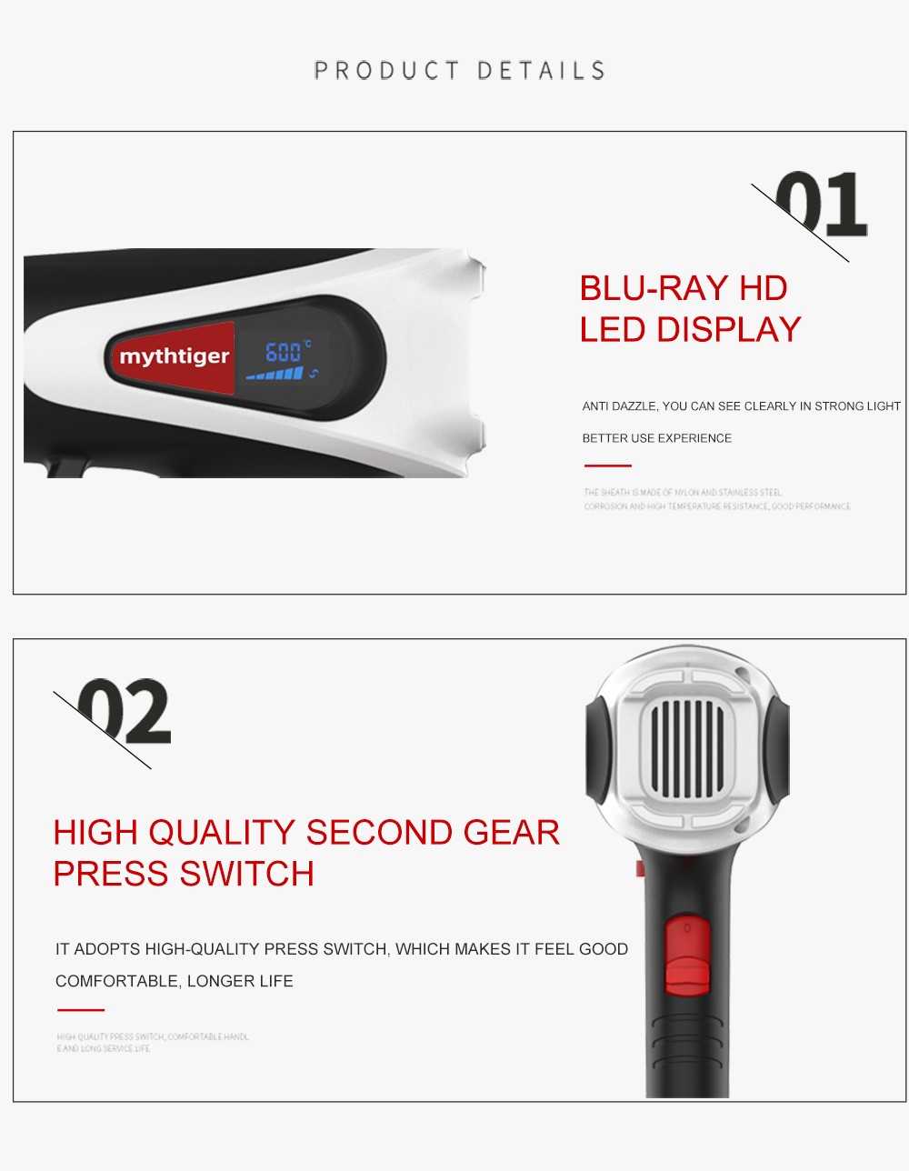 Display lcd ligital & controle de temperatura: controle de dados preciso (10 10//shift para temp) com grande display lcd para operações sutis. Você pode ajustar a temperatura e o fluxo de ar como o que você precisa.