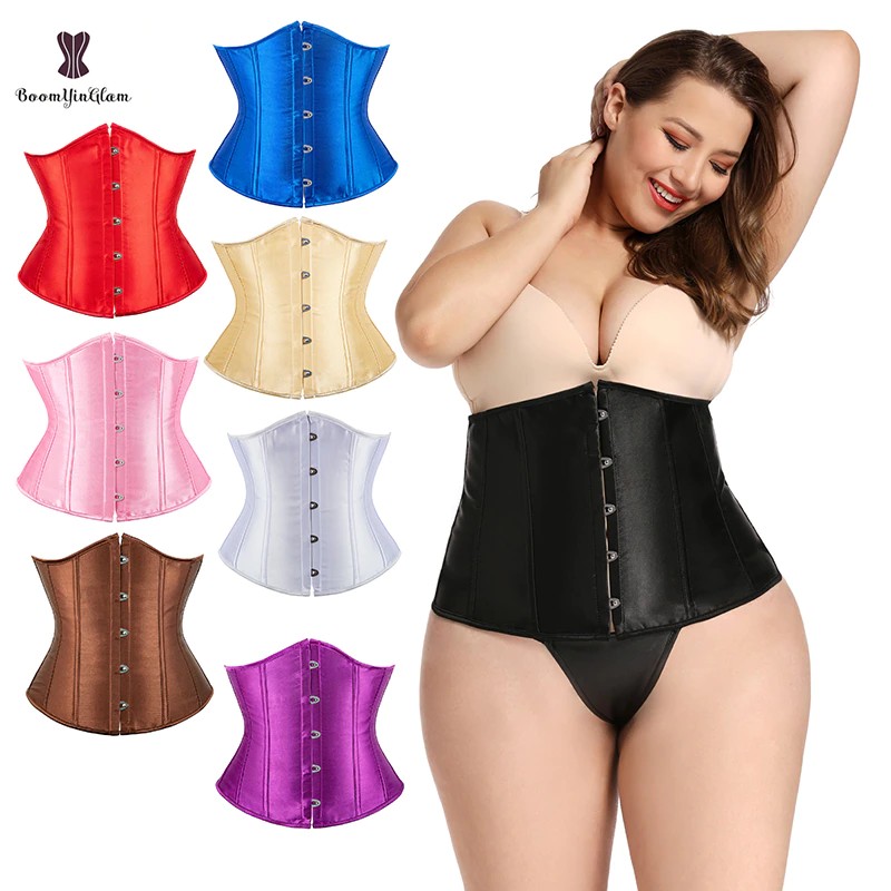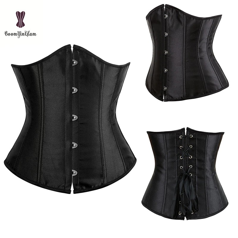Alta Qualidade Metal Busk Clipes Atacado Underbust Cintura Espartilho Emagrecimento Cintura Cinchers Lacing Bondage Espartilhos De Cetim 28335 #