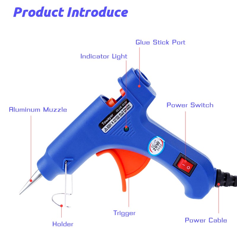 2. a fim de fazer o seu trabalho sem problemas, por favor pré-aqueça a pistola de cola por cerca de 3-5 minutos (o tempo de aquecimento) antes de usar.