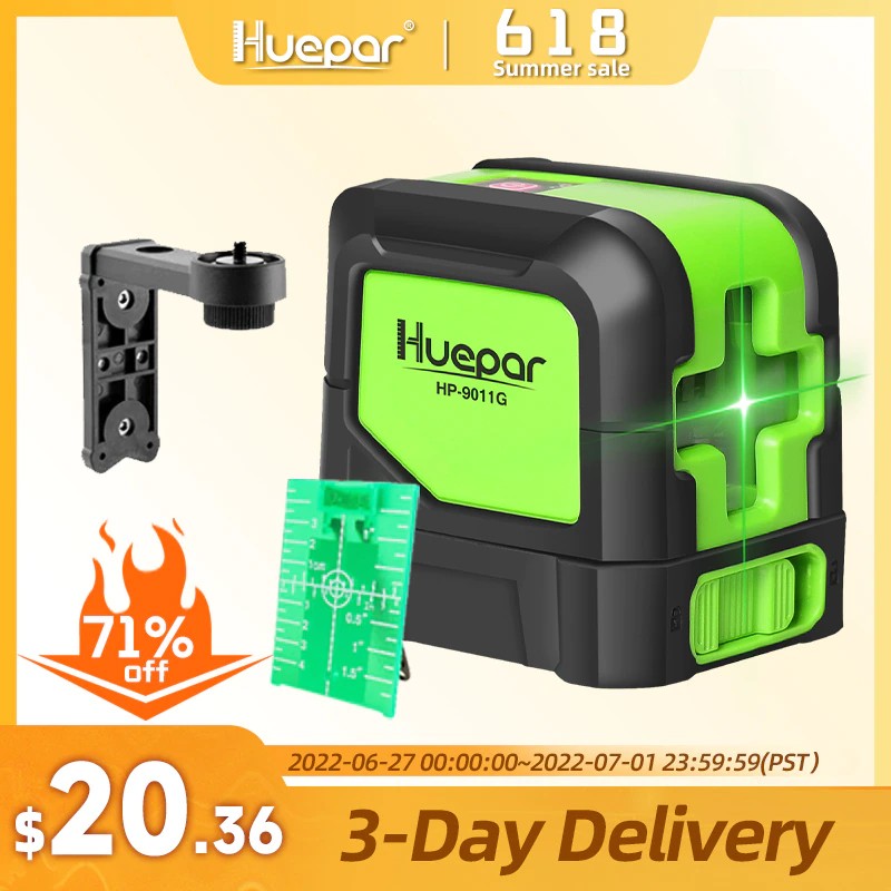Huepar 2 Linhas De Nível Do Laser Auto Nivelamento (4 Graus) Verde Vermelho Feixe Laser Horizontal &Amp; Vertical Cruz-Line Com Base Magnética