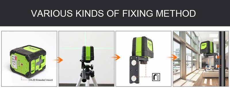 Posicionamento fino: projeta uma cruz de laser com uma precisão de ± 1/9 de uma polegada a 33 pés e brilho total para a visibilidade ótima; tempo de auto-nivelamento menos de 3 segundos; 1/4 -20 montagens de rosca permite que você o use com um tripé (não incluído) e ajuste sua altura facilmente para fazer a medição flexível e estável.
