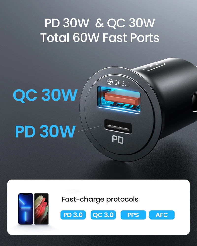 Recurso 1: [60W Total] 5A QC 3.0 PD Carregador de carro de carga rápida