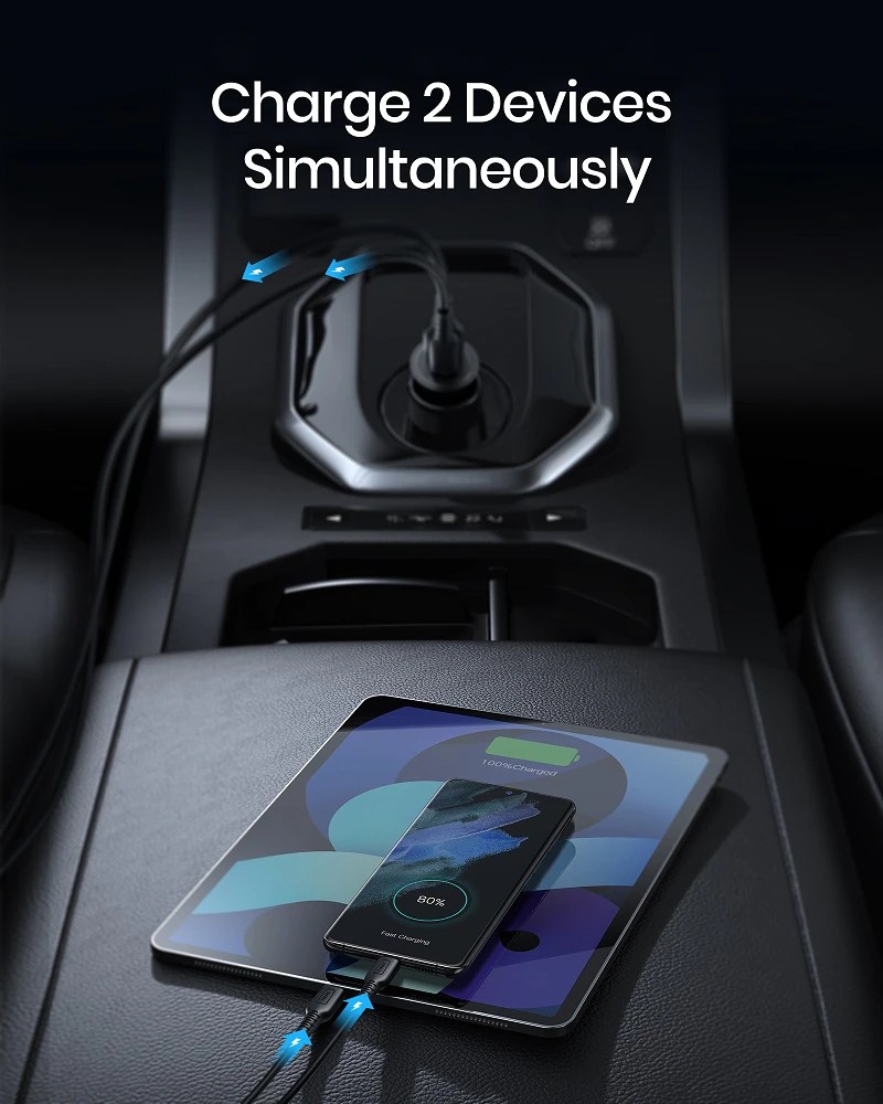 Recurso 2: Carregador Rápido de Carro Dual Port PD; Carregamento rápido