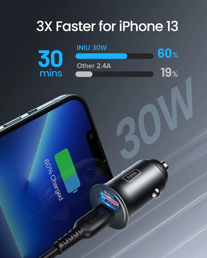 Iniu Usb Carregador De Carro 5A Tipo C Pd Qc 30W Carregamento Rápido Adaptador Telefone Para Iphone 13 12 11 Pro Max 8 Xiaomi Samsung S21 S20 S10 S9
