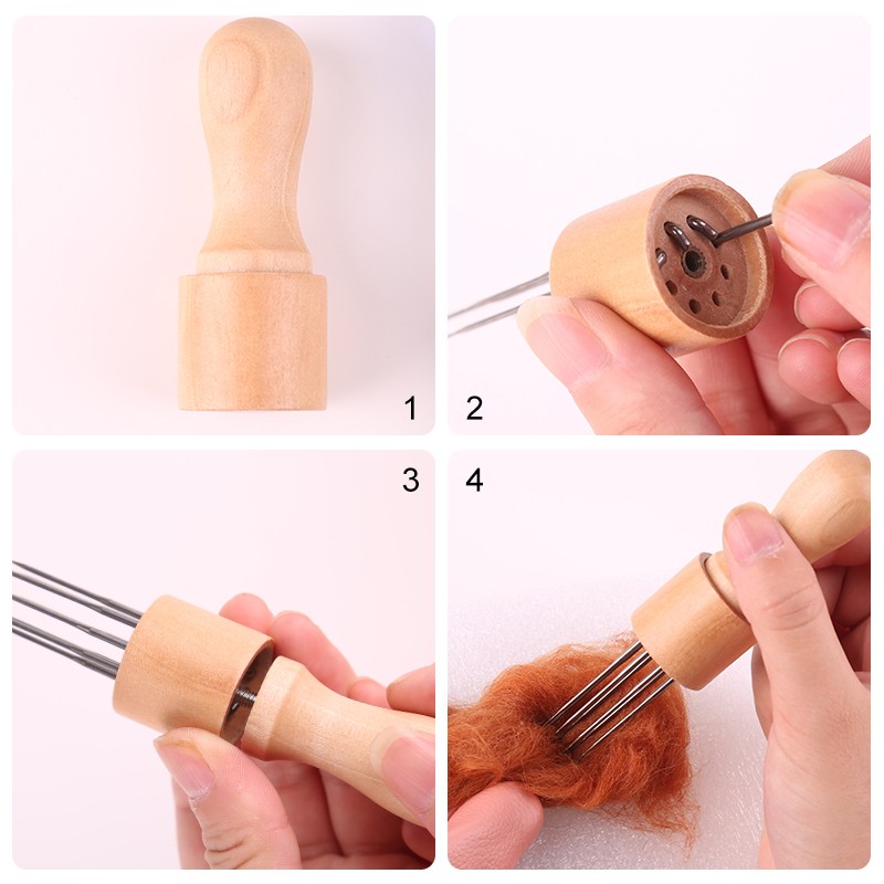 2. como usar: o cabo de madeira se separa, você encontrará um recorte. Ajuste a agulha na lacuna e, em seguida, coloque as duas partes juntas. Use com fio de lã, coloque o fio de lã na placa de espuma, perfure o grão de lã com madeira até que esteja no formato ideal.