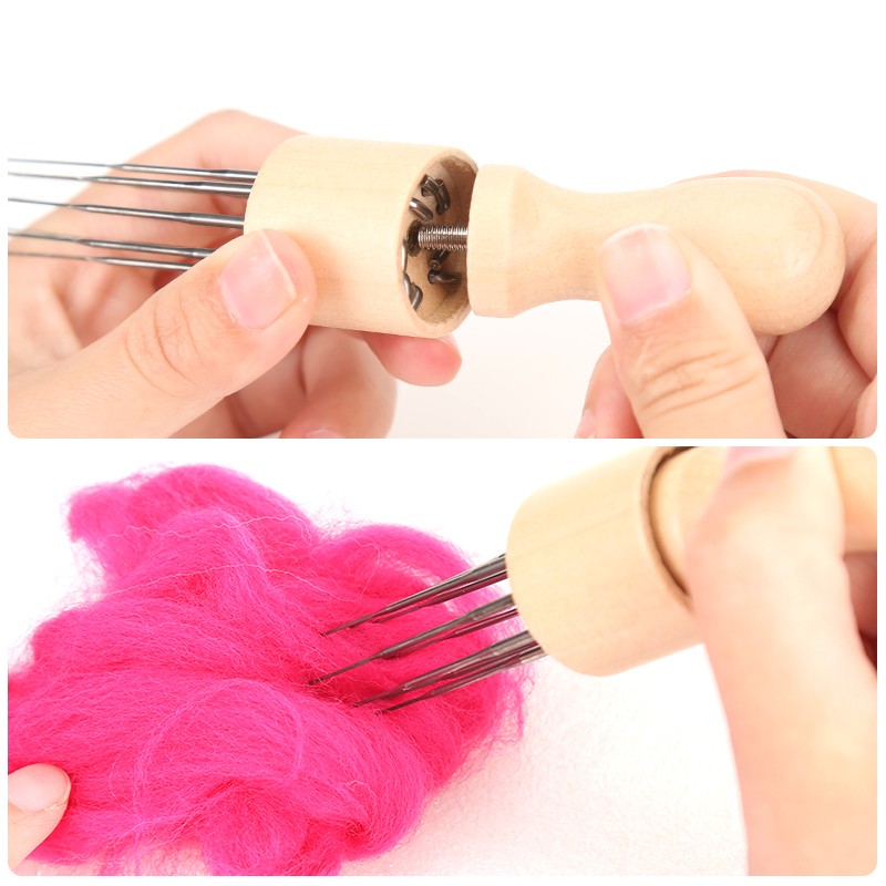 Kaobuy Agulhas Para Feltro De Lã, Ferramentas Com Oito Agulhas Para Artesanato Com Cabo De Madeira Sólida
