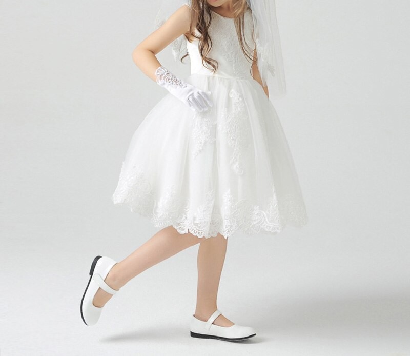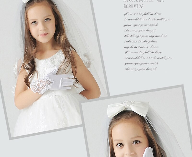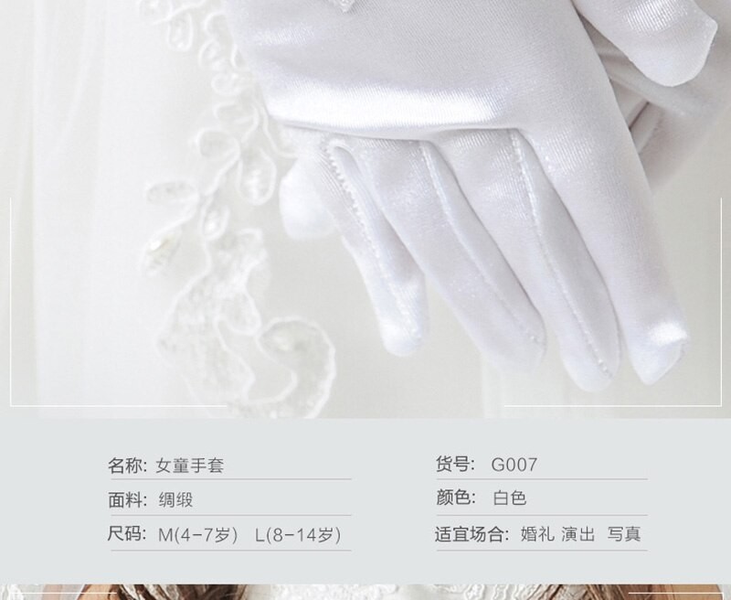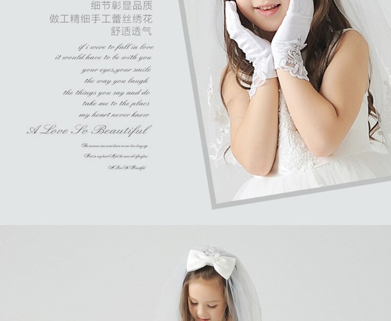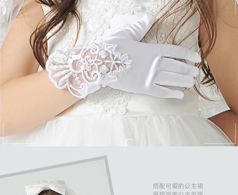 어린이 선물 흰색 탄성 메쉬 천 소녀 파티 정장 에티켓 장갑 진주 짧은 레이스 활, 어린이 공주 댄스 장갑 G79