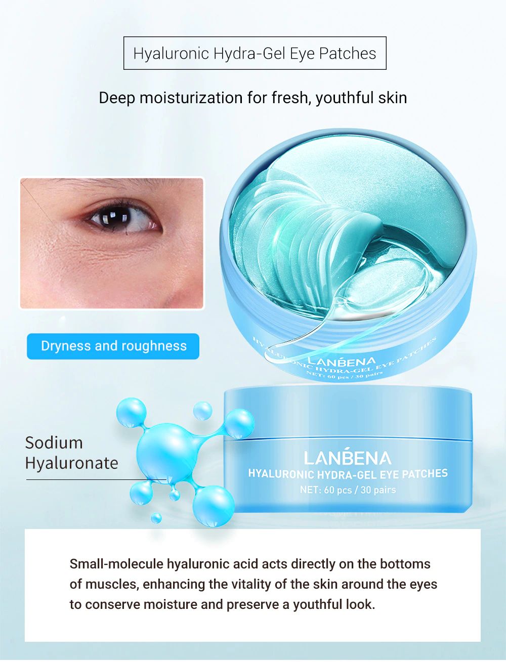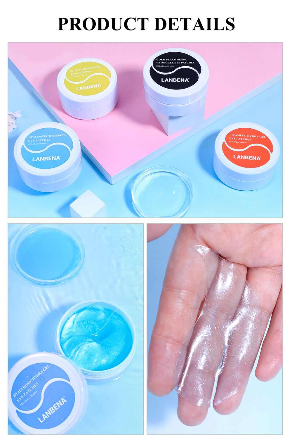 Remendos De Olho De Colágeno Lanbena 60 Pces Sacos Olho Remoção Rugas Círculos Retinol Vc Hialurônico Ácido Olhos Máscara De Sono Rosto Cuidados Com A Pele