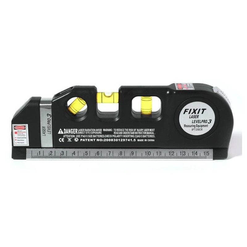 Combina uma medida da fita, uma bolha de nivelamento triplo-posicionada e um nível do laser em uma ferramenta.