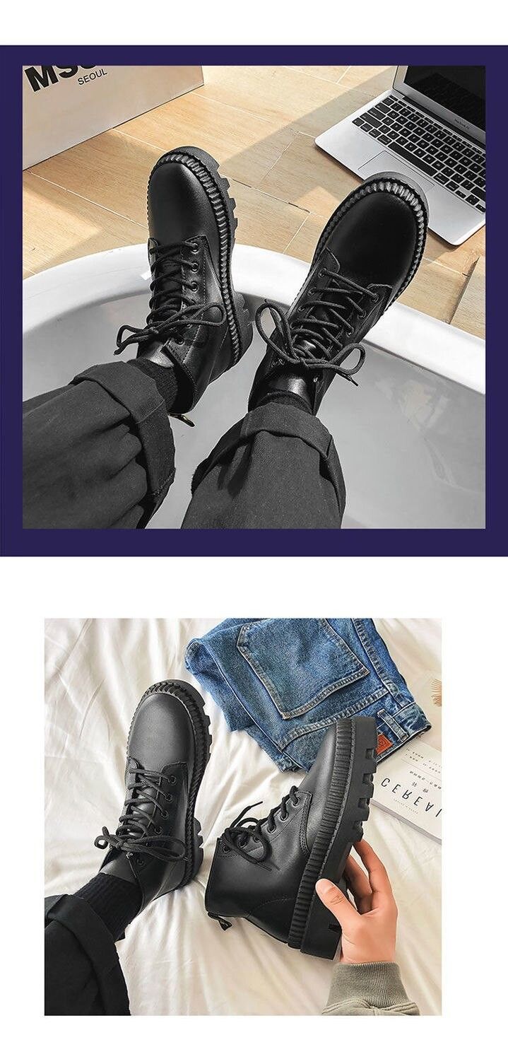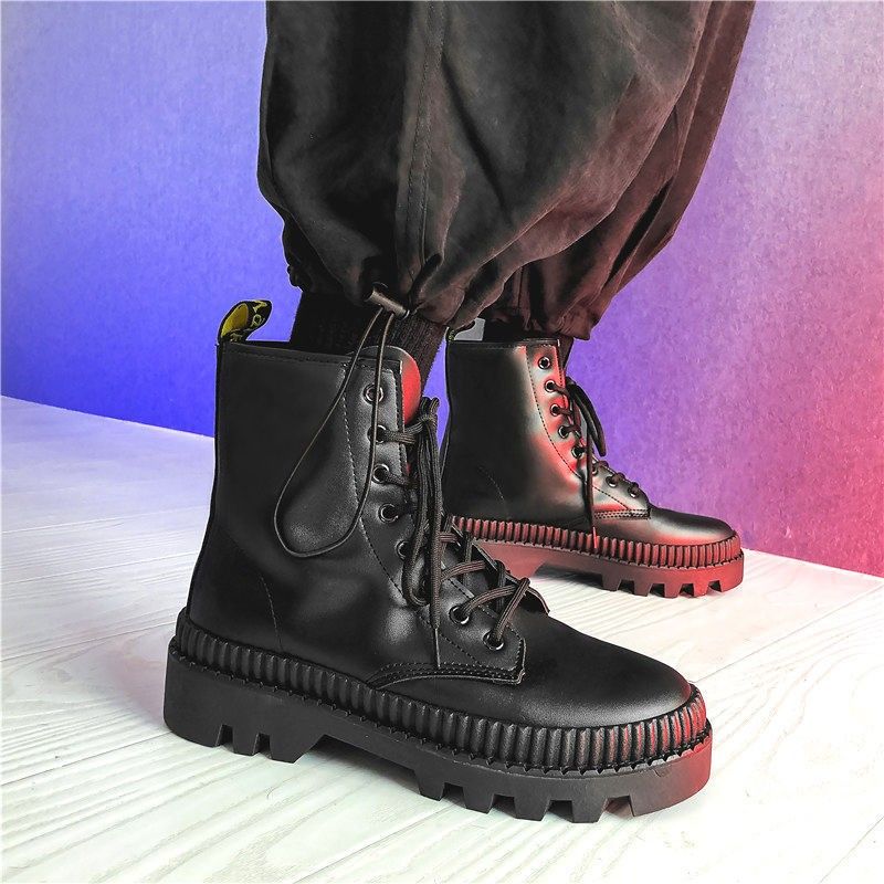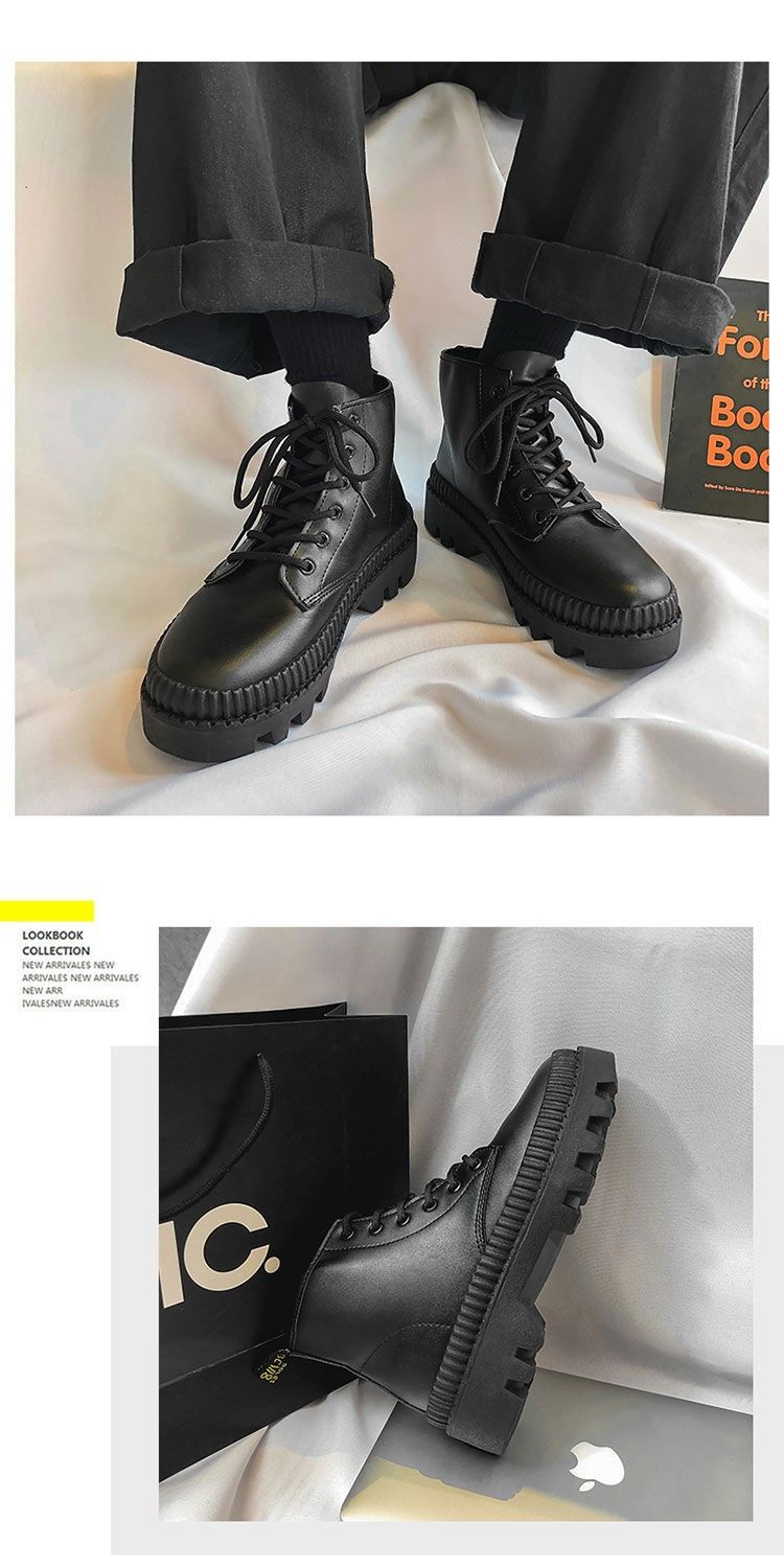 Botas Com Base Grossa E Preta Masculinas, Botas De Outono E Inverno Com Base Grossa, Estilo Britânico Calçados Casuais Para Homens Com Salto Alto Coreano Novo, Mais recentes