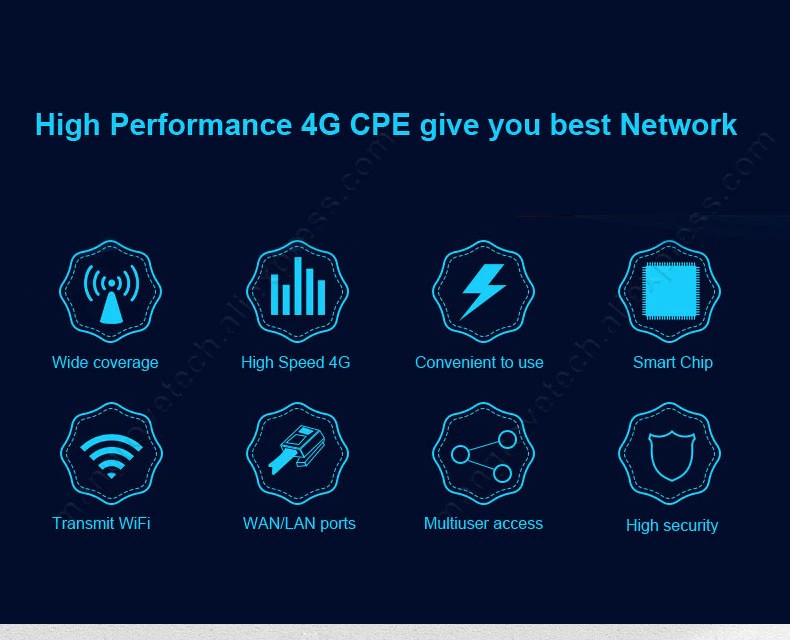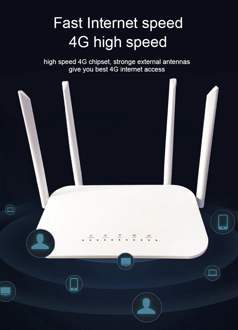 A capacidade superior do chipset 4g do roteador é 150m, e a velocidade superior teórica da estação base 4g é 150m também. Contudo a estação base 4g fornece o serviço a muitos usuários 4g ao mesmo tempo, em vez de dar largura de banda completa de 150m a um usuário, e força de sinal de 4g, a limitação do cartão sim e o ambiente afetariam a velocidade da rede também.