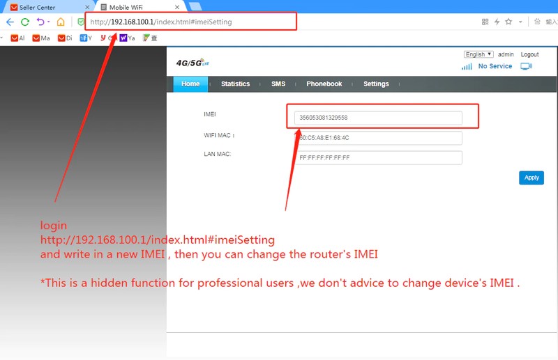 Http://192.168.100.1/index.html # imeisetting