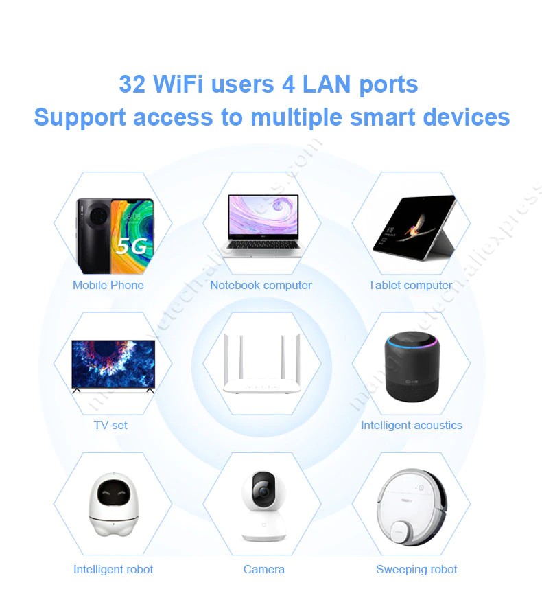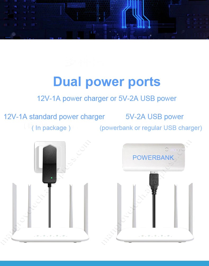Acesso, suporte 32 usuários de wifi e 4 usuários de porta lan rj45. Ele também pode trabalhar como roteador sem fio ethernet comum.