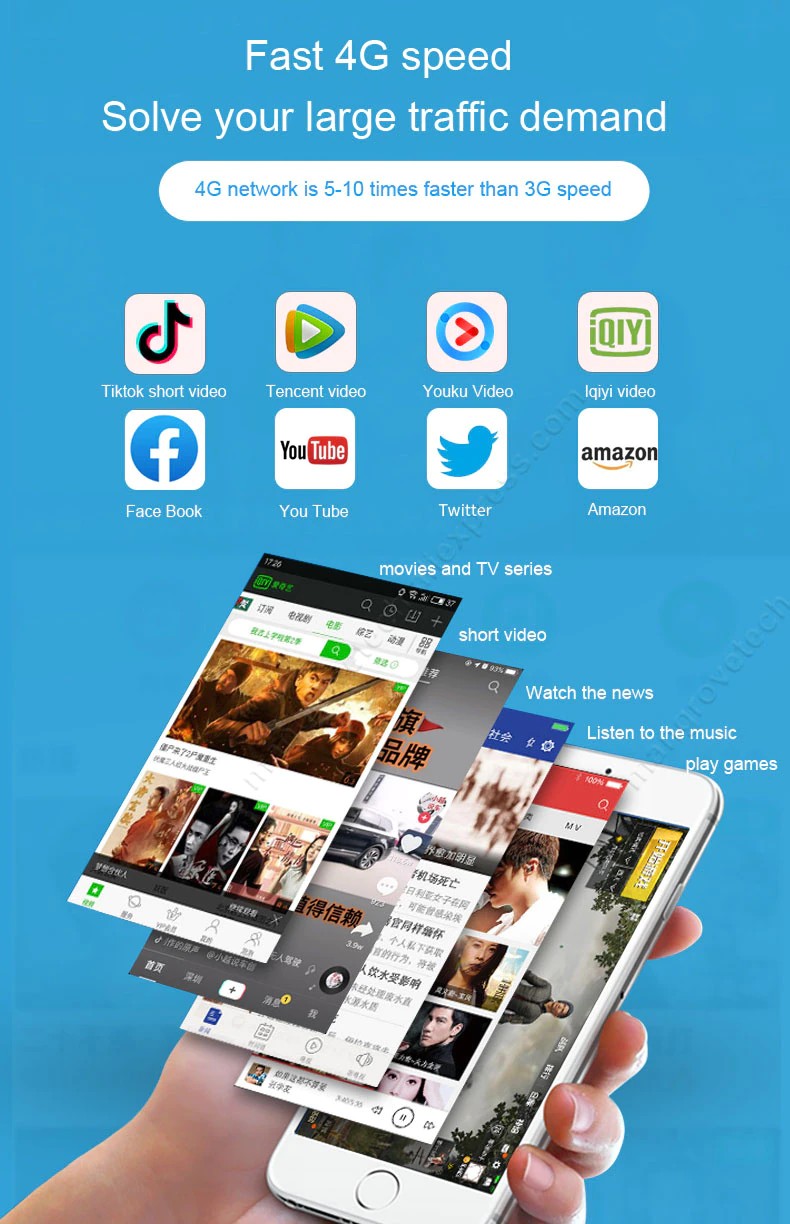 2. conhecimento sobre velocidade 4g. Em uso diário prático, 4g roteador wi-fi geralmente forneceria 1 - 10 m/s velocidade de download para usuários de wi-fi. É suficiente para os usuários comuns assistir vídeo, jogar jogos, etc sem problemas.