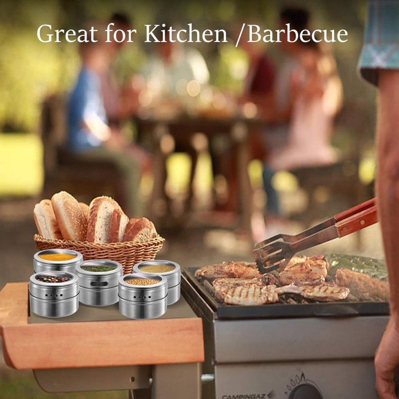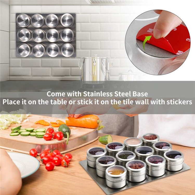 Lmetjma Magnetic Spice Jars With Wall Mounted Rack Stainless Steel Spice Tins Seasoning Containers With Spice Label Kc0305