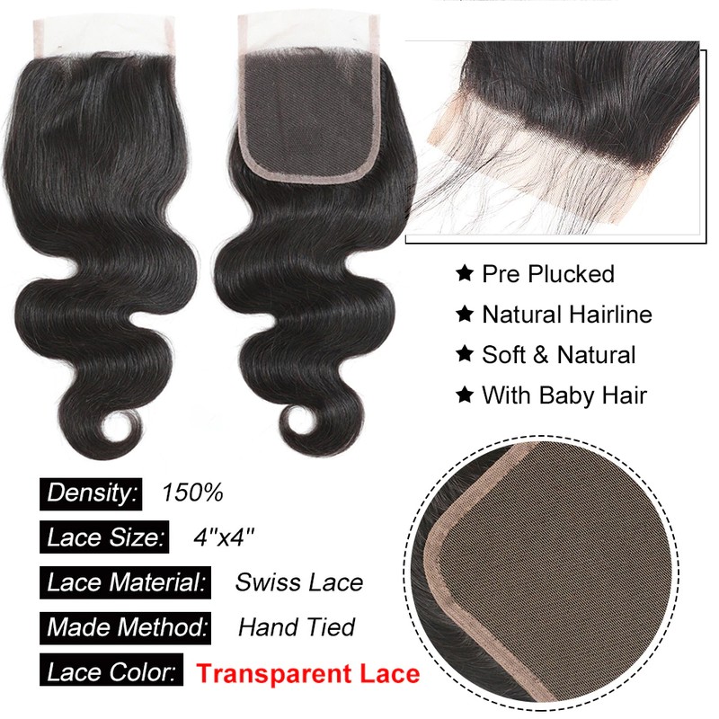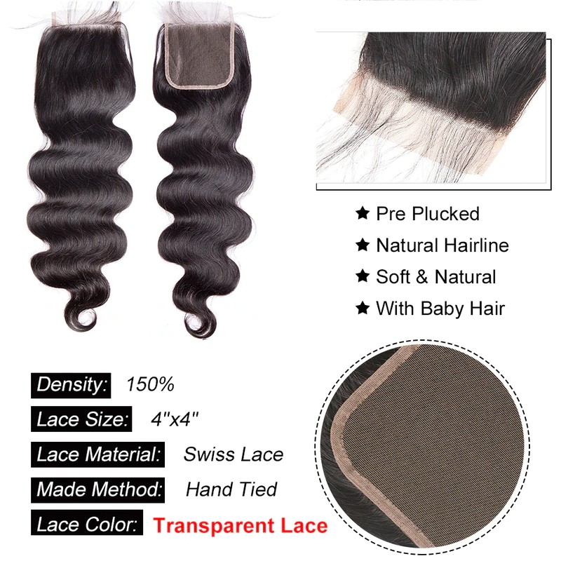 Onda Do Corpo Malaio Fechamento Do Laço Frontal Com Pacotes 100% Pacotes De Cabelo Humano Com Fechamento Frontal Remy Extensões Tecer Cabelo
